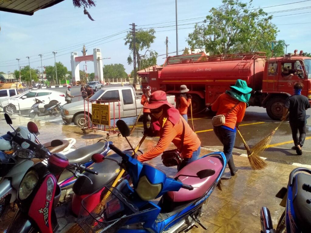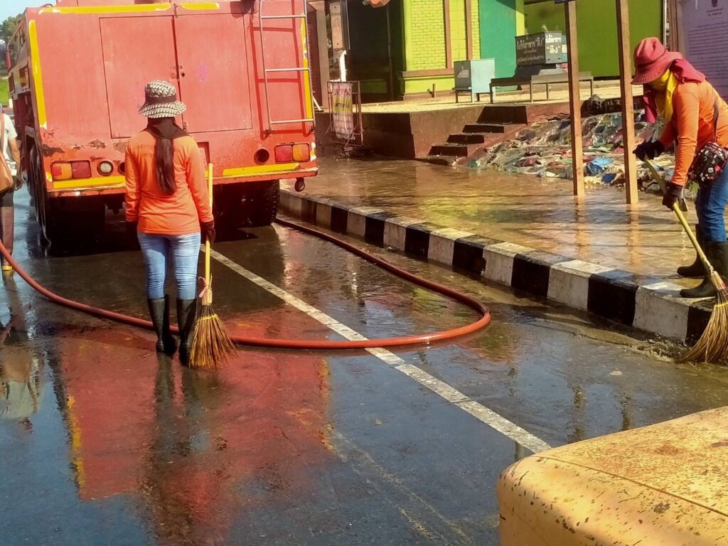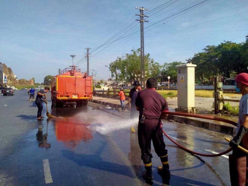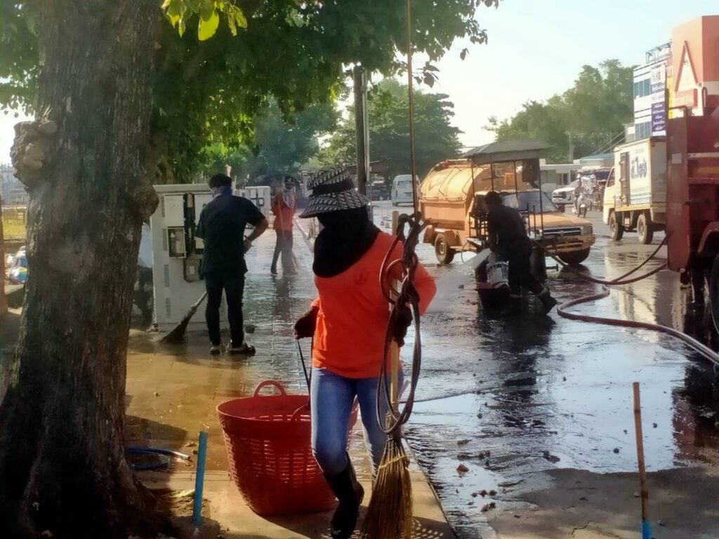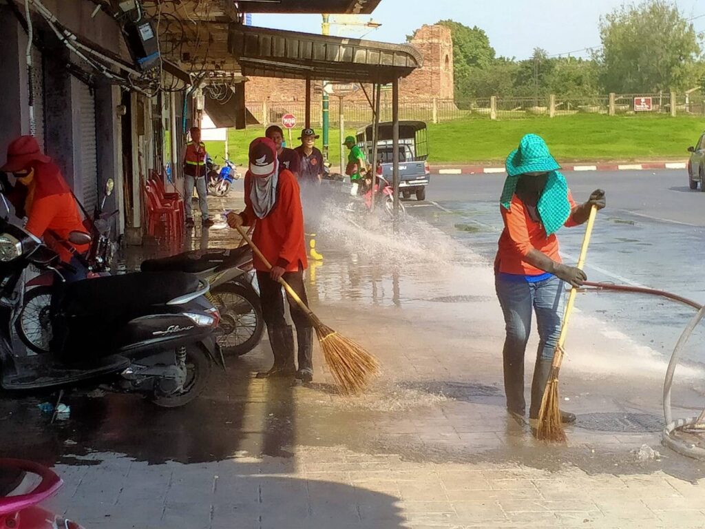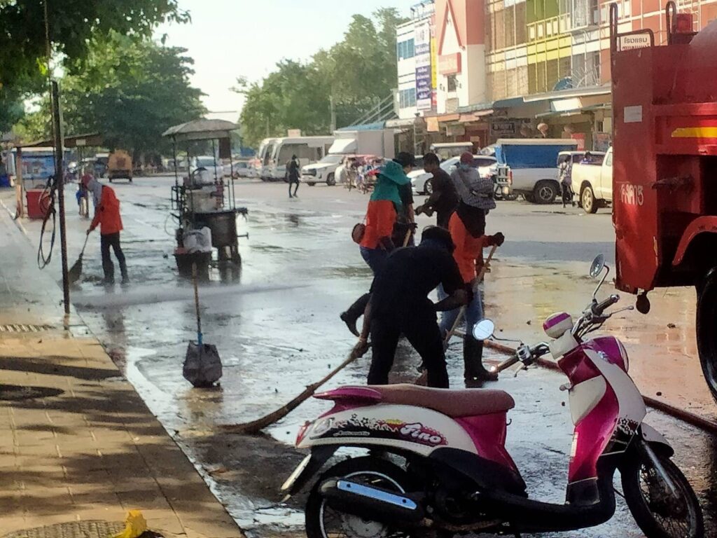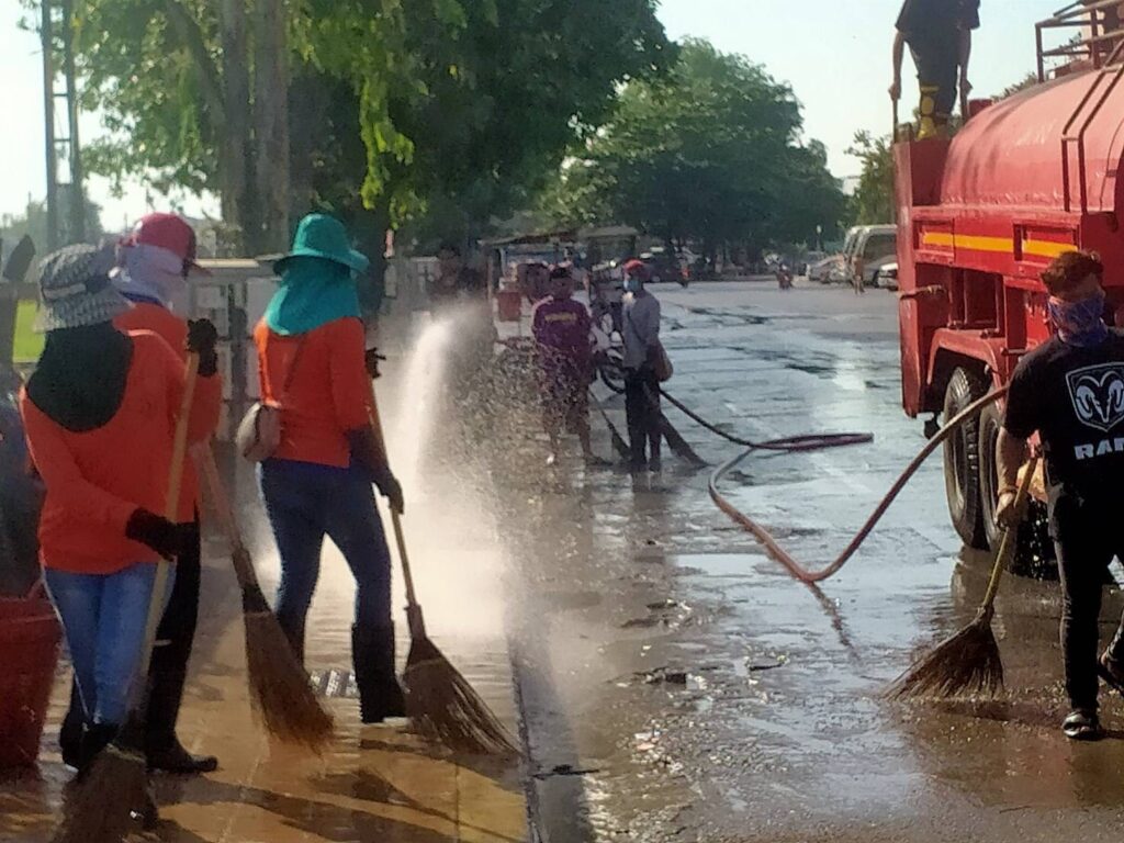 นายจำเริญ สละชีพ นายกเทศมนตรีเมืองลพบุรี มอบให้ นายอนุสรณ์ อัศวสงคราม พร้อมด้วย เจ้าหน้าที่กองสาธารณสุขและสิ่งแวดล้อมเทศบาลเมืองลพบุรี และเจ้าหน้าที่งานป้องกันและบรรเทาสาธารณภัยเทศบาลเมืองลพบุรี ดำเนินการล้างทำความสะอาดถนนหน้าพระกาฬ (ตลาดโต้รุ่งริมทางรถไฟ) และตลาดล่าง (ถนนเลียบแม่น้ำลพบุรี) เพื่อให้เกิดความสะอาด สวยงาม เป็นระเบียบ โดยเจ้าหน้าที่ได้ใช้โซดาไฟเทบนพื้นก่อนที่จะนำรถดับเพลิงฉีดน้ำ และให้เจ้าหน้าที่กวาดทำความสะอาดอีกครั้ง โดยมีการล้างทำความสะอาดพื้น ฟุตบาท และขอบฟุตบาท ตามหลักสุขาภิบาล เพื่อรักษาความสะอาด และความเป็นระเบียบเรียบร้อย รวมทั้งป้องกันการเกิดโรคติดต่อทางเดินอาหาร และขอความร่วมมือจากผู้ประกอบการภายในตลาดโต้รุ่งริมทางรถไฟ (ถนนหน้าพระกาฬ) ในการช่วยกันรักษาความสะอาดและเก็บขยะหลังเลิกขาย