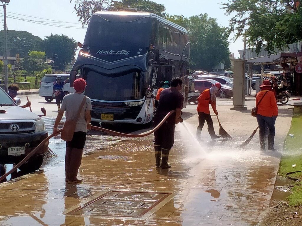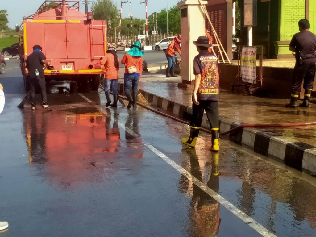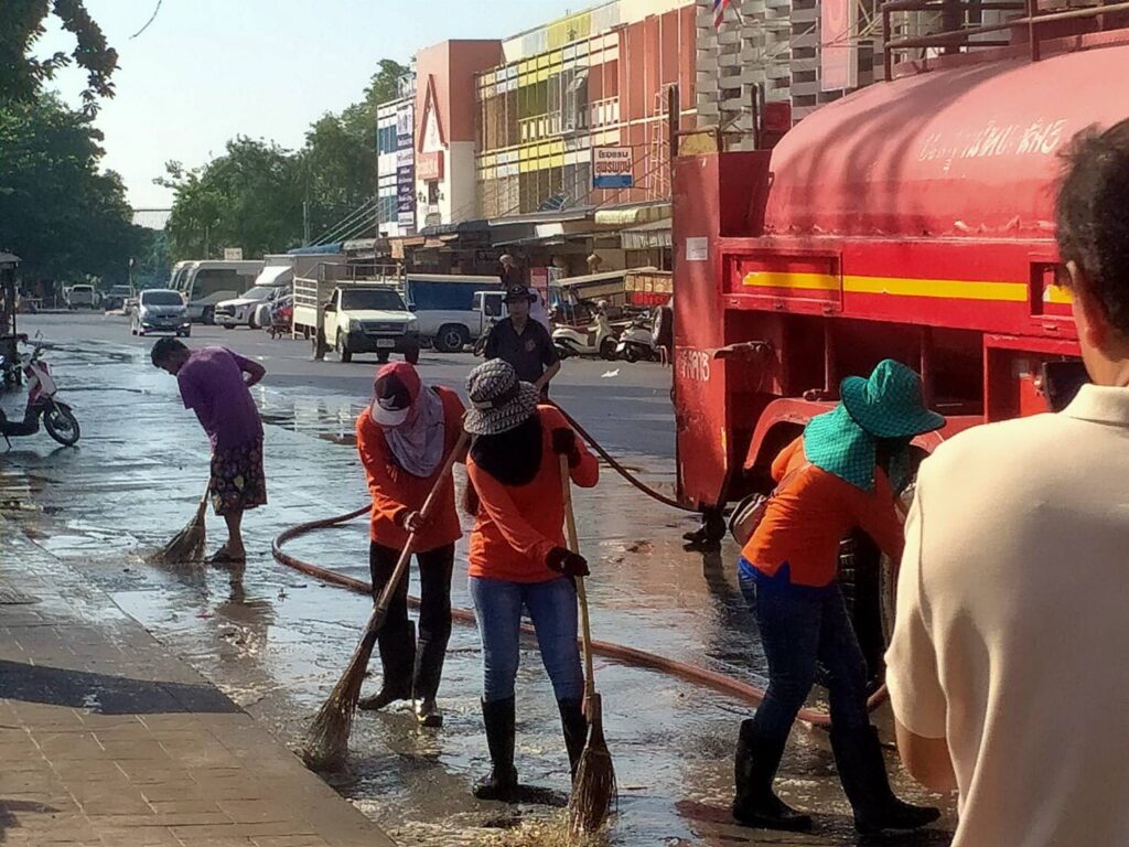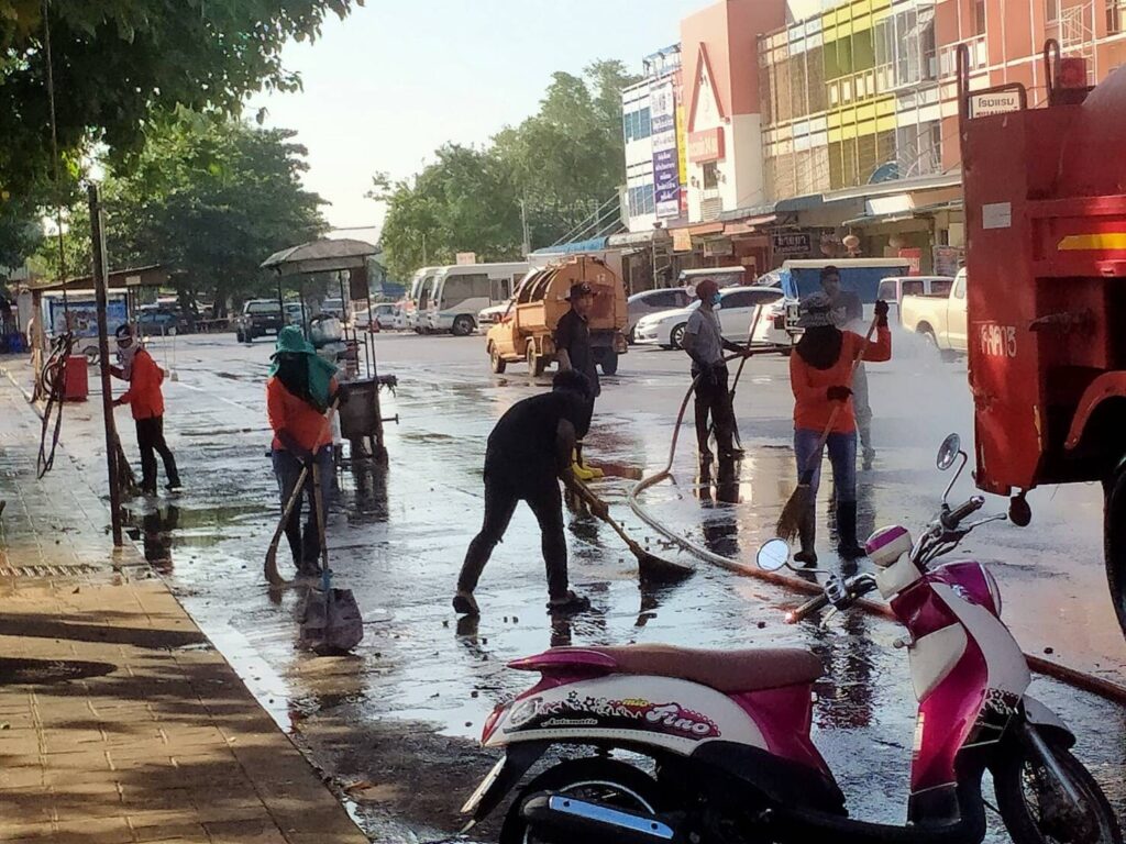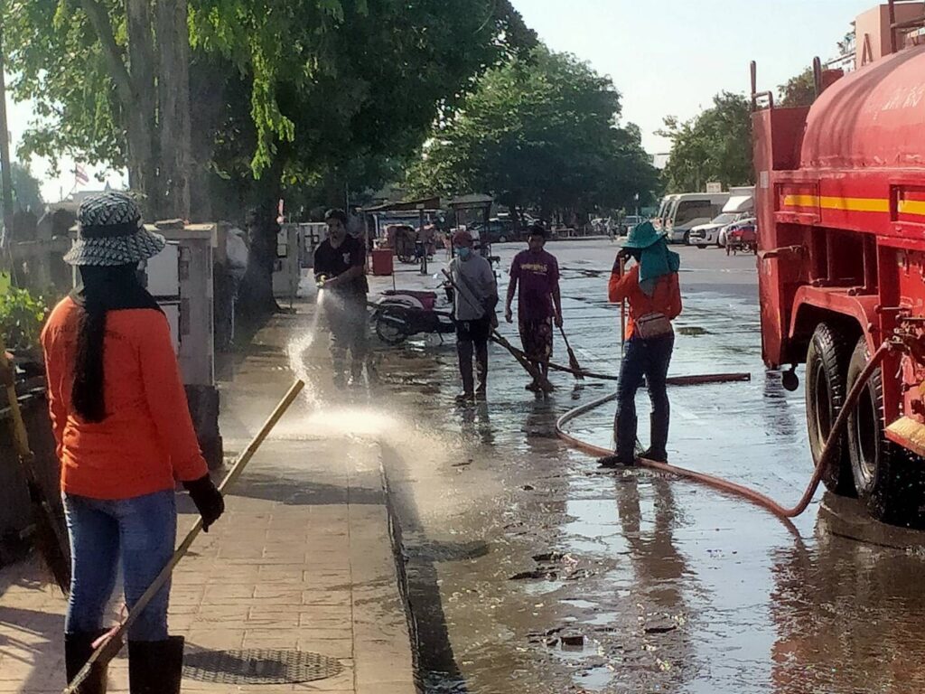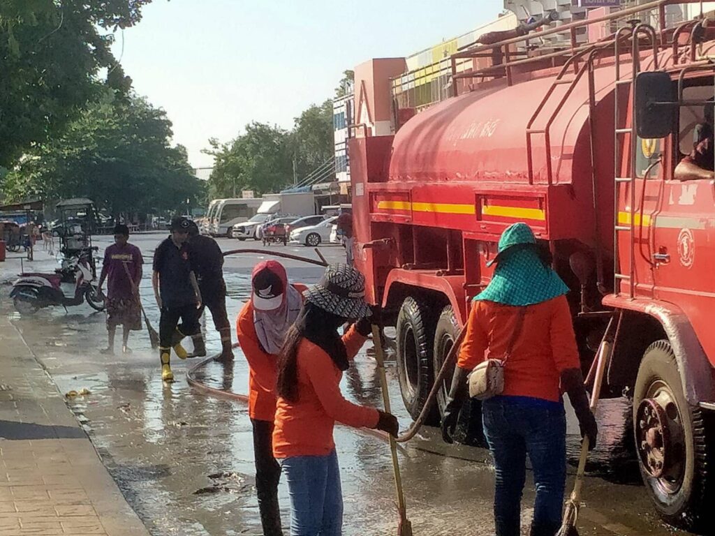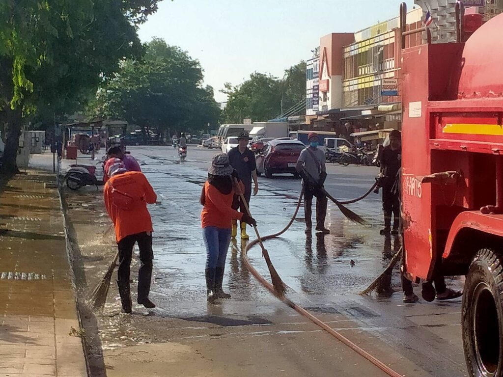 นายจำเริญ สละชีพ นายกเทศมนตรีเมืองลพบุรี มอบให้ นายอนุสรณ์ อัศวสงคราม พร้อมด้วย เจ้าหน้าที่กองสาธารณสุขและสิ่งแวดล้อมเทศบาลเมืองลพบุรี และเจ้าหน้าที่งานป้องกันและบรรเทาสาธารณภัยเทศบาลเมืองลพบุรี ดำเนินการล้างทำความสะอาดถนนหน้าพระกาฬ (ตลาดโต้รุ่งริมทางรถไฟ) และตลาดล่าง (ถนนเลียบแม่น้ำลพบุรี) เพื่อให้เกิดความสะอาด สวยงาม เป็นระเบียบ โดยเจ้าหน้าที่ได้ใช้โซดาไฟเทบนพื้นก่อนที่จะนำรถดับเพลิงฉีดน้ำ และให้เจ้าหน้าที่กวาดทำความสะอาดอีกครั้ง โดยมีการล้างทำความสะอาดพื้น ฟุตบาท และขอบฟุตบาท ตามหลักสุขาภิบาล เพื่อรักษาความสะอาด และความเป็นระเบียบเรียบร้อย รวมทั้งป้องกันการเกิดโรคติดต่อทางเดินอาหาร และขอความร่วมมือจากผู้ประกอบการภายในตลาดโต้รุ่งริมทางรถไฟ (ถนนหน้าพระกาฬ) ในการช่วยกันรักษาความสะอาดและเก็บขยะหลังเลิกขาย