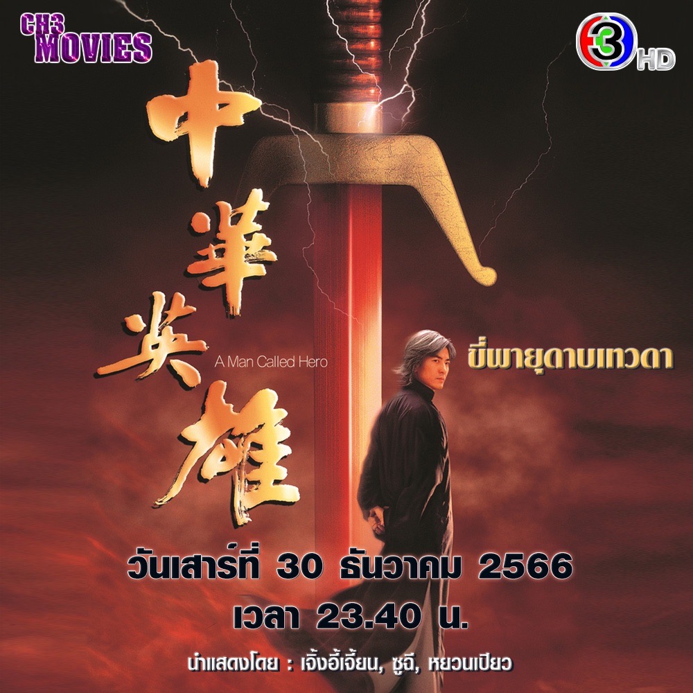 หนังบู๊สุดมันระดับตำนาน “แชนแนลทรีมูฟวี่ส์” เสนอภาพยนตร์ “ขี่พายุดาบเทวดา: A Man Call Hero” นำแสดงโดย เจิ้งอี้เจี้ยน, ซูฉี, หยวนเปียว 16 ปีก่อน อิงสง ออกเดินทางหลายหมื่นลี้มายังอเมริกา เพื่อตามล่าอาชญากรที่ทำให้พ่อแม่ของเขาเสียชีวิต แต่แล้วโศกนาฏกรรมที่เกิดขึ้นกับครอบครัวและคำสั่งที่ได้รับจากอาจารย์ ซึ่งยอมมอบพลังชีวิตเพื่อถ่ายทอดวิชาขั้นสุดยอดแก่เขานั่นจึงทำให้เขาหายสาบสูญไป 16 ปี เพื่อรักษาความสงบสุขของยุทธภพ ต่อมาพวกฝรั่งตาน้ำข้าวเหิมเกริมปฏิบัติกับคนจีนเยี่ยงทาส กลุ่มคนจีนในไชน่าทาวน์รวมตัวกันต่อสู้แต่ก็ไม่อาจต้านความพ่ายแพ้ได้ ครั้งนี้อิงสงจึงยอมปรากฏตัวเพื่อช่วยเหลือพี่น้องร่วมชาติ และรับคำท้าของศัตรูที่หมายมั่นชิงสุดยอดคัมภีร์ที่เขาครอบครองอยู่ ความแค้นและความลับที่ฝังอยู่ในใจของเขามานาน จึงปะทุออกมาด้วยพลังฝีมือเหนือเทวดาสะท้านแผ่นดินอเมริกา ติดตามได้ใน “แชนแนลทรีมูฟวี่ส์” “ขี่พายุดาบเทวดา: A Man Call Hero” เวลา 23.40 น.