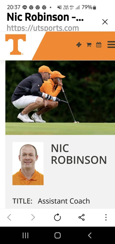 ✨ Nic Robinson – Assistant Coach, University of Tennessee Women’s Golf Team