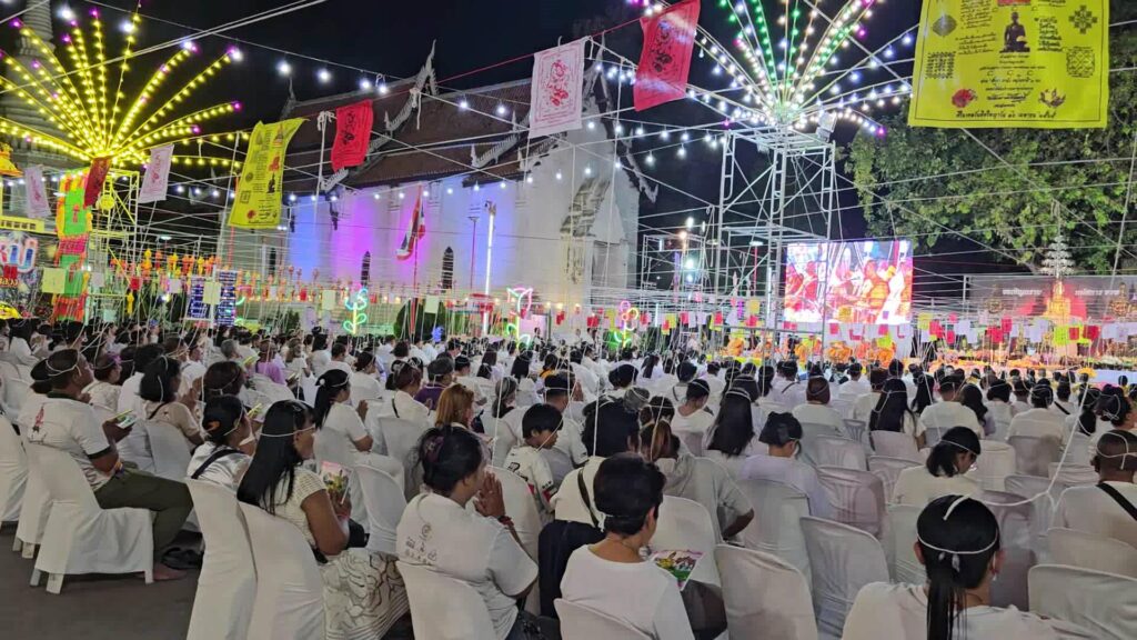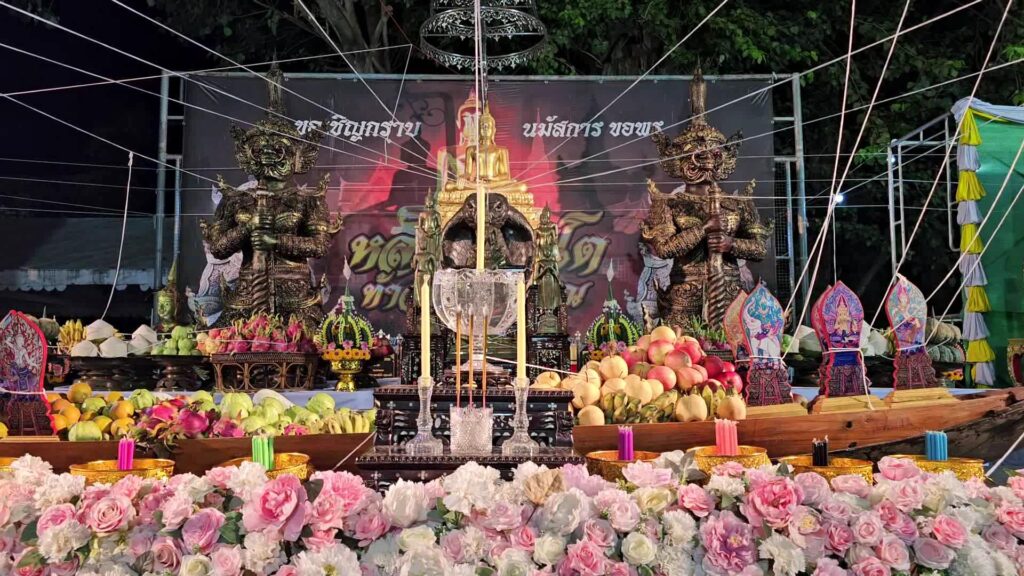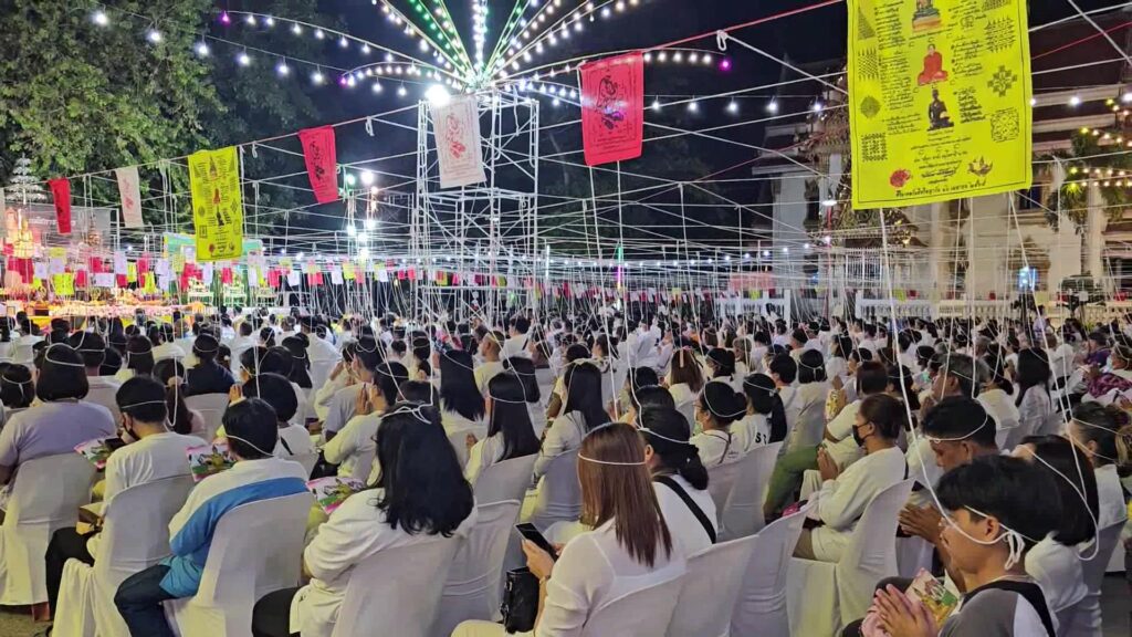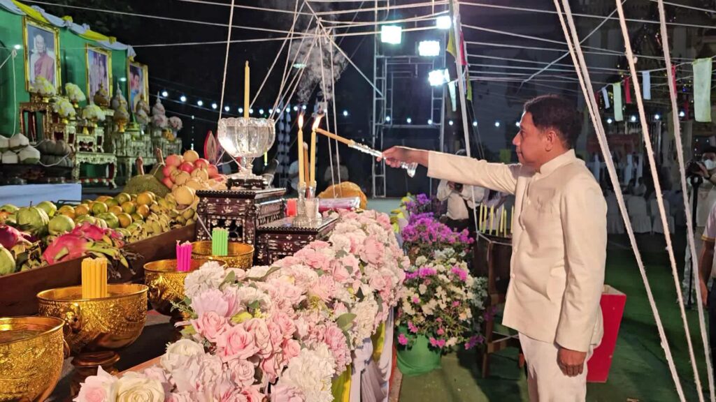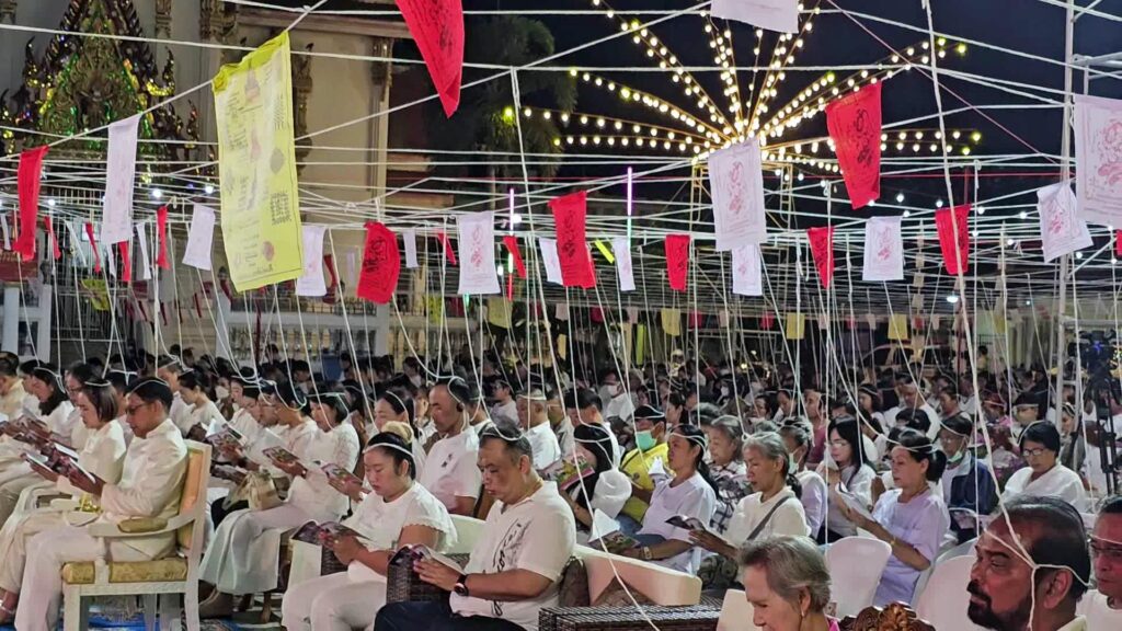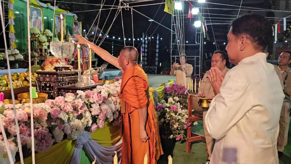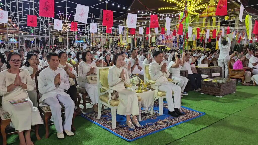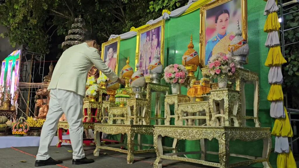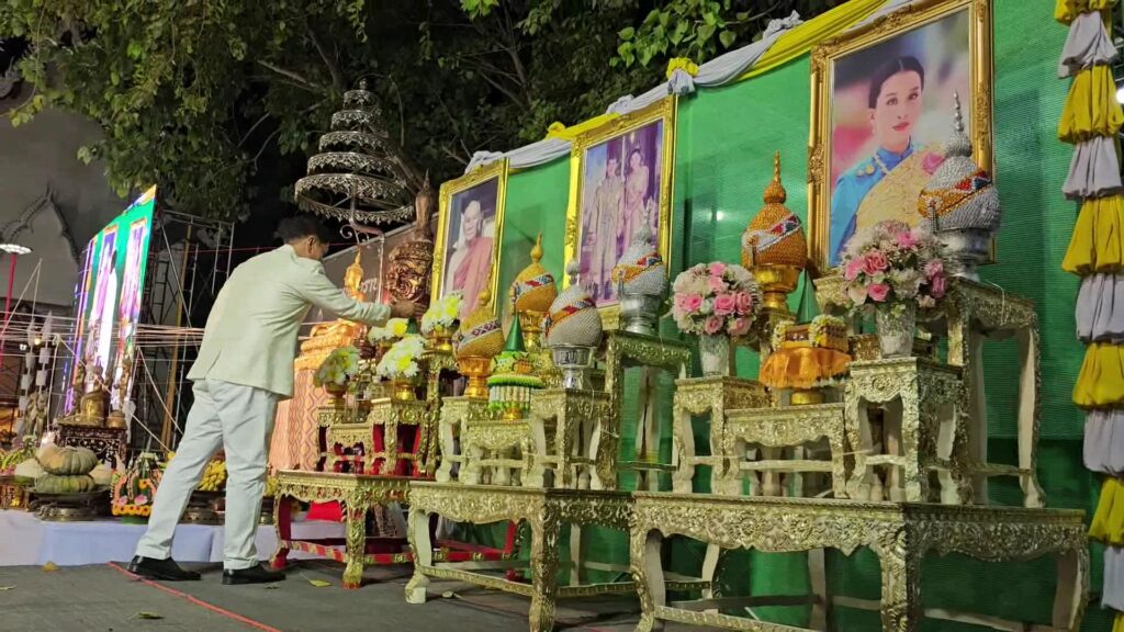 ที่ มณฑลพิธี หน้าหลวงพ่อโต วัดเสาธงทอง พระอารามหลวง ต.ท่าหิน อ.เมือง จ.ลพบุรรี นายวชิระ เกตุพันธ์ รองผู้ว่าราชการจังหวัดลพบุรี เป็นประธาน นำเหล่าพุทธศาสนิกชน จำนวนมากที่พร้อมใจกันนุ่งขาว ห่มขาว เข้าร่วมกิจกรรม เค้าดาวน์ สวดมนต์ข้ามปี พร้อมเจริญจิตภาวนาส่งท้ายปีเก่า ต้อนรับปีใหม่ 2567 โดยมี พระครูสิริจริยาภรณ์ เจ้าคณะอำเภอเมืองลพบุรี เป็นประธานฝ่างสงฆ์ โดย รองผู้ว่าราชการจังหวัดลพบุรี ได้เปิดกรวยกระทงดอกไม้ ธูปเทียนแพ ถวายสักการะหน้าพระรูป สมเด็จพระอริยวงศาคตญาณ สมเด็จพระสังฆราช สกลมหาสังฆปริณายก เปิดกรวยกระทงดอกไม้ หน้าพระบรมฉายาลักษณ์พระบาทสมเด็จพระเจ้าอยู่หัว และสมเด็จพระนางเจ้าฯ พระบรมราชินี และสมเด็จพระเจ้าลูกเธอ เจ้าฟ้าพัชรกิติยาภา นเรนทิราเทพยวดี พร้อมทั้งจุดเทียนไฟพระฤกษ์ ซึ่งได้รับพระเมตตาจากสมเด็จพระอริยวงศาคตญาณ สมเด็จพระสังฆราช สกลมหาสังฆปริณายก ประทานไฟพระฤกษ์ให้แก่ พระครูสิริจริยาภรณ์ เจ้าคณะอำเภอเมืองลพบุรี เพื่อจุดเทียนมงคลในพิธีสวดมนต์ข้ามปี โดยมีคณะสงฆ์ และพุทธศาสนิกชนจำนวนมาก พร้อมใจนุ่งขาว ห่มขาว ร่วมในพิธีเจริญชัยมงคลคาถารับปีใหม่ ด้วยการสวดมนต์ และ เจริญจิตภาวนา ข้ามปี เพื่อถวายเป็นพุทธบูชา เสริมมงคลชีวิต และถวายเป็นพระราชกุศล แด่พระบรมวงศานุวงศ์ทุกพระองค์