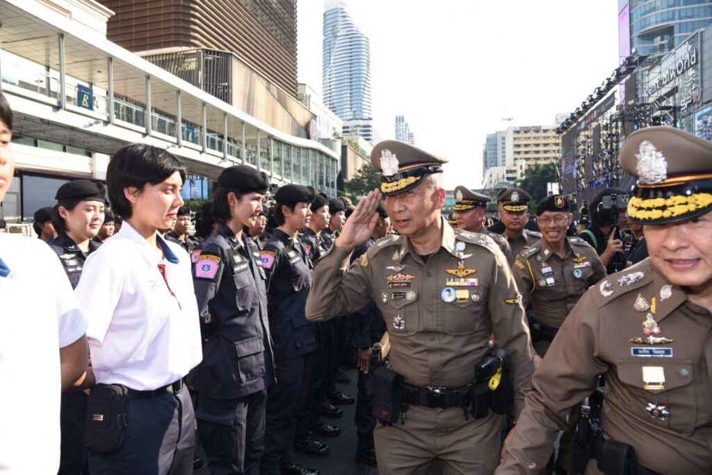 วันที่ 31 ธ.ค.2566 เวลา 15.00 น.ที่ลานเซ็นทรัลเวิลด์ : พล.ต.อ.ต่อศักดิ์ สุขวิมล ผู้บัญชาการตำรวจแห่งชาติ พร้อมด้วย พล.ต.อ.กิตติ์รัฐ พันธุ์เพ็ชร์ รอง ผบ.ตร.,พล.ต.ท.ธัชชัย ปิตะนีละบุตร ผู้ช่วย ผบ.ตร.,พล.ต.ท.สำราญ นวลมา ผู้ช่วย ผบ.ตร.,พล.ต.ท.ธิติ แสงสว่าง ผบช.น. เดินทางมาตรวจเยี่ยมมาตรการรักษาความปลอดภัยการจัดงานส่งท้ายปีเก่าต้อนรับปีใหม่ 2567