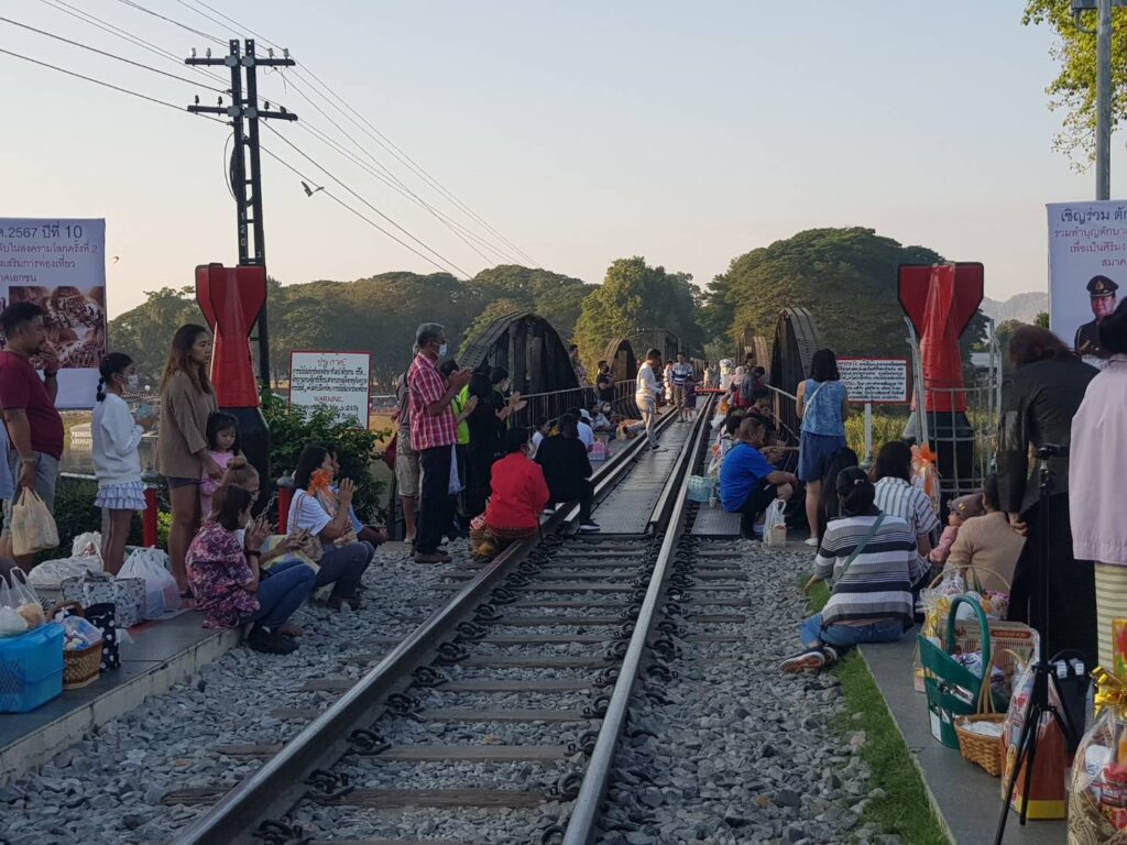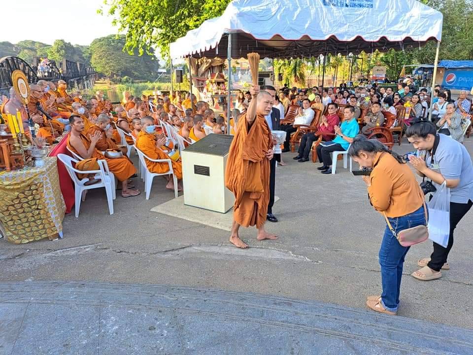 วันที่ 1 มกราคม 2567 เวลา 07.30 น.ที่บริเวณสะพานข้ามแม่น้ำแคว พ.อ. (พิเศษ) ดร.สุรินทร์ จันทร์เพียร นายกสมาคมธุรกิจท่องเที่ยวกาญจนบุรี จัดพิธีทำบุญตักบาตรอาหารแห้งพระสงฆ์ 72 รูป กลางสะพานข้ามแม่น้ำแคว เนื่องในวันขึ้นปีใหม่ 1 มกราคม พุทธศักราช 2567 เพื่ออุทิศส่วนกุศลให้กับแรงงานและเชลยศึกผู้ล่วงลับจากการสร้างทางรถไฟสายมรณะ โดยมีนางสาวสรียา บุญมาก ผู้อำนวยการการท่องเที่ยวแห่งประเทศไทย สำนักงานกาญจนบุรี ประชาชนทั้งชาวไทยและชาวต่างชาติ ร่วมทำบุญตักบาตรจำนวนมาก พ.อ. (พิเศษ) ดร.สุรินทร์ จันทร์เพียร นายกสมาคมธุรกิจท่องเที่ยวกาญจนบุรี เผยว่า สมาคมธุรกิจท่องเที่ยวกาญจนบุรี ร่วมกับ ภาครัฐ ภาคเอกชน จัดงานเนื่องในวาระดิถีขึ้นปีใหม่ ทำบุญตักบาตรกลางสะพานข้ามแม่น้ำแคว ในวันที่ 1 มกราคม พุทธศักราช 2567 พร้อมร่วมพิธีสวดมาติกา บังสุกุลให้กับแรงงานและเชลยศึกผู้ล่วงลับจากการสร้างทางรถไฟสายมรณะและได้นิมนต์พระสงฆ์ จำนวน 72 รูปเดินรับบิณฑบาตกลางสะพานข้ามแม่น้ำแคว ซึ่งเป็นสะพานทางประวัติศาสตร์ที่สำคัญของจังหวัดกาญจนบุรี สร้างขึ้นในสมัยสงครามโลกครั้งที่ 2 และเป็นแลนด์มาร์กที่นักท่องเที่ยวต่างนิยมเดินทางมาเที่ยวชมสะพานประวัติศาสตร์แห่งนี้ สำหรับพิธีทำบุญตักบาตรข้าวสาร อาหารแห้ง กลางสะพานข้ามแม่น้ำแคว เพื่ออุทิศส่วนกุศลให้แก่ผู้ล่วงลับในสงครามโลกครั้งที่ 2 กลางสะพานข้ามแม่น้ำแคว ซึ่งจัดขึ้นเป็นประจำในวันที่ 1 มกราคม ของทุกปี โดยในปีนี้เป็นปีที่ 10 เพื่อสืบสานประเพณี วัฒนธรรมอันดีงาม เสริมความเป็นสิริมงคลแก่ตนเองและครอบครัวเนื่องในโอกาสวันขึ้นปีใหม่ ตลอดจนเป็นการส่งเสริมการท่องเที่ยวของจังหวัดกาญจนบุรีและเพื่อกระตุ้นเศรษฐกิจการเที่ยวของจังหวัดกาญจนบุรี ให้มีนักท่องเที่ยวเข้ามาเที่ยวในจังหวัดกาญจนบุรีมากยิ่งขึ้น