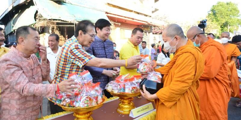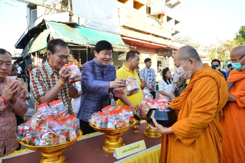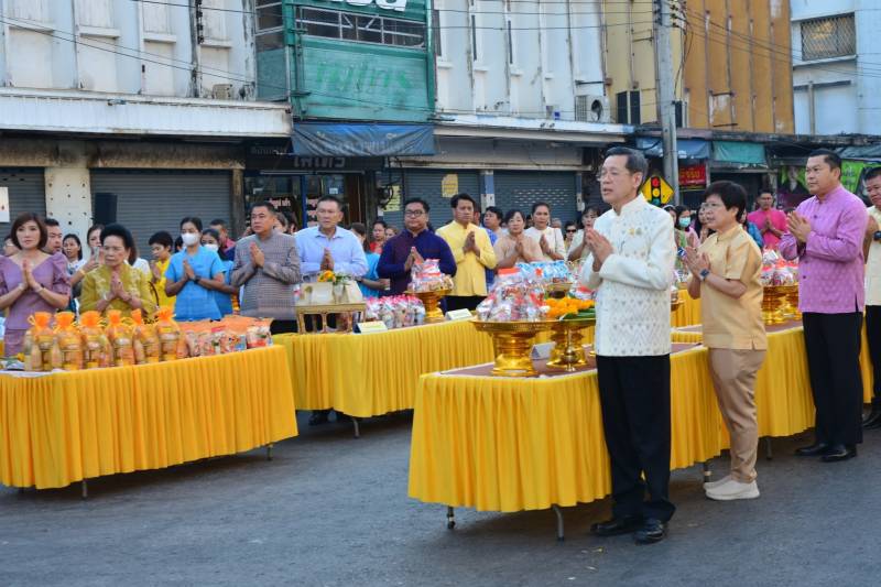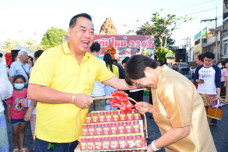 เมื่อวันที่ ๑ มกราคม ๒๕๖๗ ที่บริเวณเทวสถานปรางค์แขก นายจำเริญ สละชีพ นายกเทศมนตรีเมืองลพบุรี ได้จัดให้มีพิธีตักบาตรข้าวสารอาหารแห้งเนื่องในวันขึ้นปีใหม่ ซึ่งมี นายอำพล อังคภากรณ์กุล ผู้ว่าราชการจังหวัดลพบุรี เป็นประธานพิธีทำบุญตักบาตรข้าวสารอาหารแห้ง วันขึ้นปีใหม่ ประจำปีพุทธศักราช ๒๕๖๗ เพื่อเป็นการอนุรักษ์สืบสานประเพณีอันดีงาม เพื่อเป็นสิริมงคลต่อชีวิตและครอบครัวในการดำเนินชีวิตต้อนรับปีใหม่ โดยมี พระครูสิริจริยาภรณ์ เจ้าคณะอำเภอเมืองลพบุรี รักษาการแทนเจ้าอาวาสวัดเสาธงทอง พระอารามหลวง แสดงสัมโมทนียกถา พร้อมประพรมน้ำพระพุทธมนต์แก่ พุทธศาสนิกชนที่มาร่วมพิธีทำบุญตักบาตร และนายจำเริญ สละชีพ นายกเทศมนตรีเมืองลพบุรี ได้แจกข้าวสารและปฏิทินของเทศบาลเมืองลพบุรี เพื่อเป็นของขวัญวันปีใหม่ แก่ผู้เข้าร่วมพิธีฯ