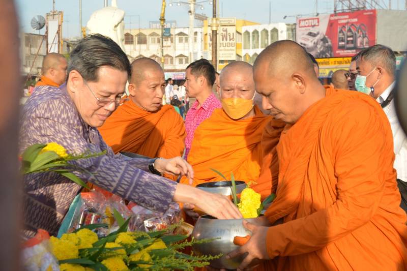 เมื่อวันที่ ๓๑ ธันวาคม ๒๕๖๖ ที่บริเวณวงเวียนศรีสุริโยทัย หรือวงเวียนสระแก้ว นายจำเริญ สละชีพ นายกเทศมนตรีเมืองลพบุรี ได้จัดให้มีพิธีตักบาตรข้าวสารอาหารแห้ง เนื่องในวันส่งท้ายปีเก่า โดยมี นายอำพล อังคภากรณ์กุล ผู้ว่าราชการจังหวัดลพบุรี เป็นประธานพิธี พร้อมด้วย ข้าราชการ ทหาร ตำรวจ ประชาชน ร่วมตักบาตรข้าวสารอาหารแห้ง โดยมี พระภาวนาวชิรมงคล วิ. รองเจ้าคณะจังหวัดลพบุรี เจ้าอาวาสวัดป่าธรรมโสภณ แสดงสัมโมทนียกถา พร้อมประพรมน้ำพระพุทธมนต์แก่พุทธศาสนิกชนที่มาร่วมพิธี ทำบุญตักบาตร และมอบข้าวสารและปฏิทินของเทศบาลเมืองลพบุรี เพื่อเป็นของขวัญวันปีใหม่ แก่ผู้เข้าร่วมพิธีฯ