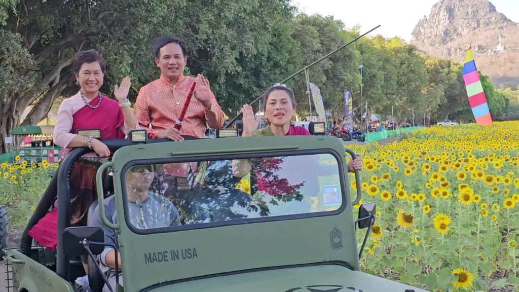 ทุ่งทานตะวันเขาจีนแล ณ สนามกระโดดร่มทางยุทธวิธี ของศูนย์สงครามพิเศษ จังหวัดลพบุรี ยังคงเหลืองอร่ามเต็มท้องทุ่งบนเนื้อที่กว่า 400 ไร่ และมีระยะทางใกล้กับตัวเมืองลพบุรี ประมาณ 10 กิโลเมตร ทุ่งทานตะวันที่เหลืองอร่ามงามตา ที่ลายล้อมไปด้วยภูเขาที่โดดเด่นเป็นฉากหลังของทุ่งทานตะวันอย่างสวยงาม และถือได้ว่าเป็นทุ่งทานตะวันแปลงใหญ่ในพื้นที่ “เขตทหาร” ที่สวยที่สุดแห่งเดียวของประเทศไทย ทำให้ ศูนย์สงครามพิเศษ ในฐานะเจ้าของพื้นที่ ร่วมกับ หัวหน้าส่วนราชการ หน่วยงานภาครัฐและเอกชน จัดกิจกรรม รณรงค์ แต่งชุดไทย นุ่งโจง ห่มสไบ ใส่สวย มาถ่ายภาพกับทุ่งทานตะวันบาน ซึ่งเป็นช่วงสัปดาห์สุดท้าย ก่อนกลีบดอกทานตะวันจะร่วงโรย ประกอบกับ ด้วยจังหวัดลพบุรี ใกล้จะถึงงานใหญ่ที่คนลพบุรี พร้อมใจแต่งไทยทั้งเมือง ในงานแผ่นดินสมเด็จพระนารายณ์มหาราช ปี 2567 ระหว่างวันที่ 9 – 18 กุมภาพันธ์ 2567 ณ พระนารายณ์ราชนิเวศน์และโบราณสถานใกล้เคียง เพื่อเป็นการส่งเสริมการแต่งไทย ด้วยการนุ่งโจง เพื่อสร้างอัตลักษณ์ และถือเป็นอีกหนึ่งซอฟพาวเวอร์ของจังหวัดลพบุรี ที่มีมายาวนาน สอดคล้องกับนโนบายของรัฐบาล และจังหวัด เพื่อกระตุ้นเศรษฐกิจการท่องเที่ยวของไทย