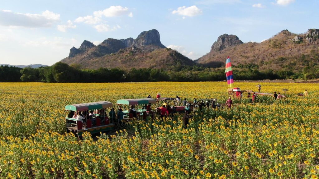 ซึ่งนอกจากบันทึกภาพกับทุ่งทานตะวันแล้ว ยังมีกิจกรรมอีกมากมายได้ไปสัมผัสกัน เช่น กิจกรรมชมทุ่งทานตะวัน ด้วยการขับรถเอทีวี นั่งรถไฟชมทุ่ง การให้อาหารสัตว์ การารจำหน่ายสินค้าต่างๆ โดยเฉพาะอย่างยิ่ง สินค้าที่เป็นผลผลิตของสมาชิกโครงการเกษตร อีกด้วย