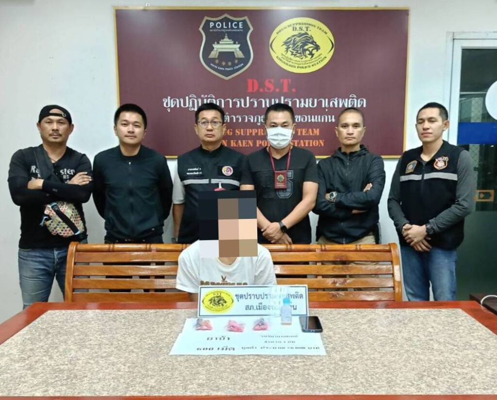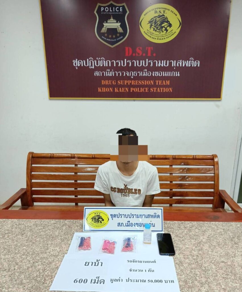 จับกุมผู้ต้องหา 1 ราย ทราบชื่อ นายวรวุฒิ หรือโอ๊ต สุริสาย อายุ 27 ปี อยู่บ้านเลขที่ 381 ม.18 ต.พระลับ อ.เมืองขอนแก่น จ.ขอนแก่น”ในข้อหาจำหน่ายยาเสพติดให้โทษประเภท 1 (เมทแอมเฟตามีนหรือยาบ้า) โดยการมีไว้เพื่อจำหน่าย โดยกระทำเพื่อการค้า”ยึดของกลาง ยาบ้า จำนวน 600 เม็ด และโทรศัพท์มือถือ จำนวน 1 เครื่อง พร้อมตรวจยึดตามมาตรการตรวจสอบทรัพย์สินฯ พบรถจักรยานยนต์ ยี่ห้อ ฮอนด้า รุ่น เวฟ 125 สีฟ้า ไม่ติดแผ่นป้ายทะเบียน ราคาประมาณ 50,000 บาท จำนวน 1 คัน จากนั้นนำส่งพนักงานสอบสวน สภ.เมืองขอนแก่นเพื่อดำเนินคดีต่อไป