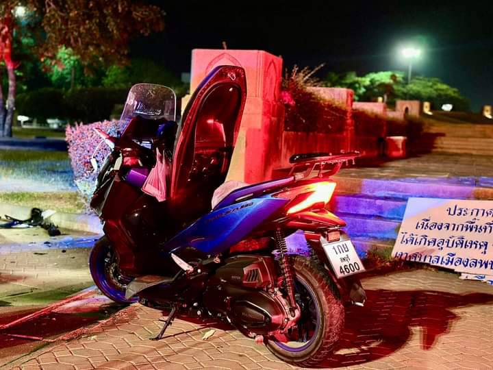 พบชายกลางคน ขับขี่รถจักรยานยนต์ แหกโค้ง ชนวงเวียนพระนารายณ์ ตำบลทะเลชุบศร อำเภอเมือง จังหวัดลพบุรี