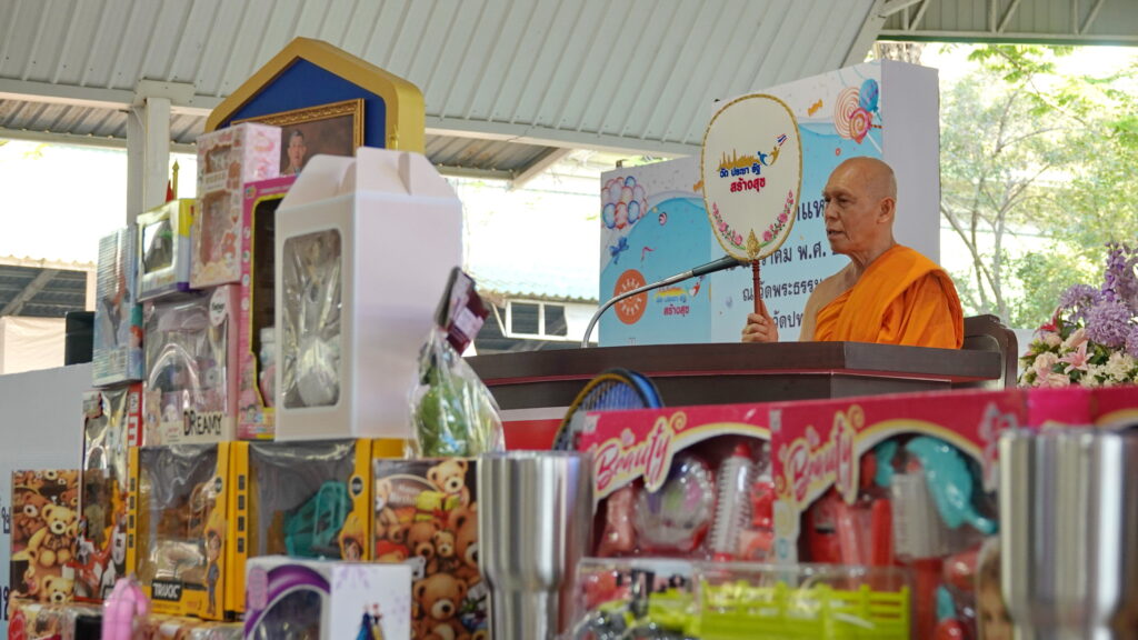 เมื่อเวลา 09.00 น. วันที่ 9 มกราคม 2567 ที่อาคารโถงช้างฯ วัดพระธรรมกาย ต.คลองสาม อ.คลองหลวง จ.ปทุมธานี พระครูสังฆรักษ์รังสฤษดิ์ อิทฺธิจินฺตโก เจ้าอาวาสวัดพระธรรมกาย นำภาคีเครือข่าย “บวร” ปฏิบัติธรรม และมอบของขวัญสนับสนุนการจัดงาน “วันเด็กแห่งชาติ” ประจำปี พ.ศ. 2567 จำนวนกว่า 200 องค์กรและชุมชนในจังหวัดปทุมธานีและจังหวัดใกล้เคียง ถวายเป็นพระราชกุศลแด่พระบาทสมเด็จพระเจ้าอยู่หัว