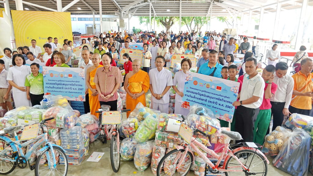 นายองอาจ ธรรมนิทา โฆษกคณะศิษยานุศิษย์วัดพระธรรมกาย กล่าวว่า วัดพระธรรมกาย มูลนิธิธรรมกาย และเครือข่ายคณะศิษยานุศิษย์วัดพระธรรมกายทั่วโลก ได้ประสานความร่วมมือดำเนินงานตามแผนพัฒนากายภาพ สังคม การเรียนรู้ จิตใจ และปัญญา ตามแนวทางของโครงการวัด ประชา รัฐ สร้างสุข ส่งเสริมการดำเนินกิจกรรมในโครงการสร้างความปรองดองสมานฉันท์โดยใช้หลักธรรมทางพระพุทธศาสนา หมู่บ้านรักษาศีล 5 และดำเนินการตามภารกิจงานด้านการสาธารณสงเคราะห์ของคณะสงฆ์ จึงได้ดำเนินการจัดการมอบของขวัญเพื่อสนับสนุนการจัดกิจกรรมงานวันเด็กแห่งชาติ ให้กับองค์กรภาคีเครือข่ายบวร เป็นประจำทุกปี โดยในปี พ.ศ. 2567 ได้จัดมอบของขวัญให้กับภาคีเครือข่ายบ้าน วัด โรงเรียน ราชการ จำนวนรวมกว่า 200 องค์กร