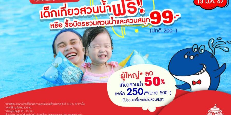 สยามอะเมซิ่งพาร์ค ร่วมส่งความสุขให้น้องๆ หนูๆ เนื่องในวันเด็กแห่งชาติ ประจำปี 2567 ซึ่งปีนี้ตรงกับวันเสาร์ที่ 13 มกราคม โดยมอบของขวัญสุดพิเศษโปรโมชั่นหน้าเคาน์เตอร์ สำหรับเด็กที่สูงไม่เกิน 130 ซม.รับบัตรเล่นสวนน้ำฟรี!! ชุ่มฉ่ำกับทะเลเทียมที่ใหญ่ที่สุดในโลกรับรองสถิติโดยกินเนส เวิลด์ เรคคอร์ดส และเครื่องเล่นทางน้ำอื่นๆ มากมาย หรือซื้อบัตรรวมสวนสนุก-สวนน้ำ สนุกไม่อั้นทั้งวันกับเครื่องเล่นเสริมสร้างจินตนาการ ทักษะการเรียนรู้ ในราคาเพียง 99 บาท จากปกติ 200 บาท
