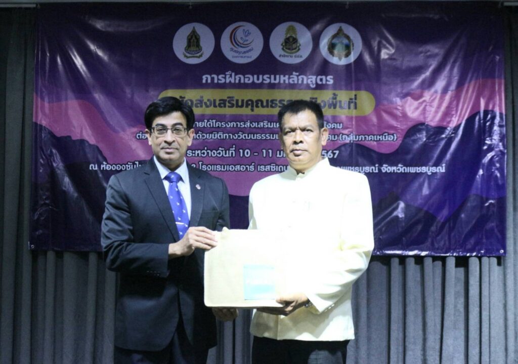 ศูนย์คุณธรรม จึงได้ดำเนินการจัดฝึกอบรมนักส่งเสริมคุณธรรมเชิงพื้นที่ ภาคเหนือขึ้น เพื่อสร้างความเข้าใจหลักการ แนวทาง วิธีการ ในการขับเคลื่อนคุณธรรมเชิงพื้นที่แบบมีส่วนร่วม และสร้างเครือข่ายนักส่งเสริมคุณธรรมเชิงพื้นที่ในจังหวัดคุณธรรมใหม่ในกลุ่มภาคเหนือขึ้นที่จังหวัดเพชรบูรณ์ระหว่างวันที่ 10-11มกราคม2567 โดยมี รศ.นพ.สุริยเดว ทรีปาตี ผู้อำนวยการศูนย์คุณธรรมบรรยายพิเศษ เรื่อง