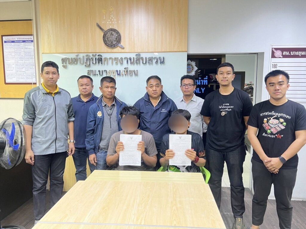 พ.ต.อ.กฤติเดช จันทร์เพชร ผกก.สน.บางขุนเทียน สั่งการให้ พ.ต.ท.ขจร ธูปประกายศรี สว.สส.สน.บางขุนเทียน นำกำลังฝ่ายสืบสวน สน.บางขุนเทียน จับกุมนายธีระพันธ์ หรือ พัน มีบึงพร้าว อายุ 27 ปี และนายวิโรจน์ หรือตี๋ ศรีสวัสดิ์ อายุ 36 ปี โดยทั้งสองเป็นชาว จ.พิษณุโลก หลังติดต่อเข้ามามอบตัวที่ห้องฝ่ายสืบสวน สน.บางขุนเทียน เมื่อช่วงค่ำของวานนี้ (11 ม.ค.)