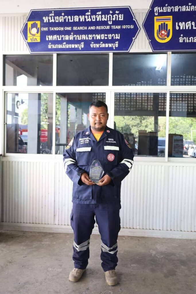 เจ้าหน้าที่ป้องกันและบรรเทาสาธารณภัย เทศบาลตำบลเขาพระงาม ที่ได้รับโล่เกียรติคุณ อาสาสมัครดีเด่น ประจำปี พ.ศ. 2566