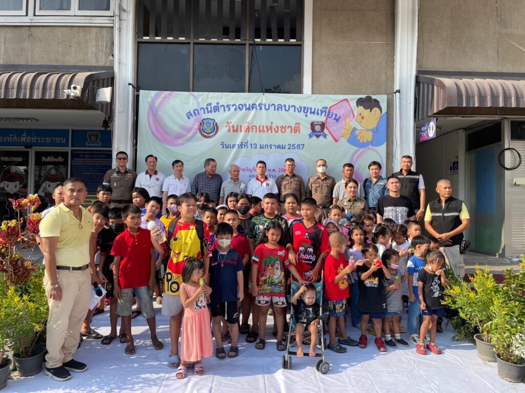 วันที่ 14 ม.ค. ที่ สน.บางขุนเทียน พ.ต.อ.กฤติเดช จันทร์เพชร ผกก.สน.บางขุนเทียน พร้อม พ.ต.ท.จารุกิตติ์พัฒน์ สุขยิ่ง รอง ผกก.สส.สน.บางขุนเทียน พ.ต.ท.กิตติพัฐฏ์ แก้วสำอางค์ รอง ผกก.ป.สน.บางขุนเทียน และ พ.ต.ท.พลัฏฐ์ ทับทิม รอง ผกก.จร.สน.บางขุนเทียน ร่วมกันจัดงานวันเด็กแห่งชาติประจำปี 2567 โดยมีข้าราชการตำรวจ คณะ กต.ตร.และผู้ใหญ่ใจดีร่วมมอบของขวัญอาทิ รถจักรยาน ตุ๊กตา อุปกรณ์การศึกษา และขนมให้แก่เด็กและเยาวชนที่มาร่วมงานจำนวนมาก ทั้งนี้ในช่วงหัวค่ำยังถือโอกาสจัดงานเลี้ยงต้อนรับเทศกาลปีใหม่ 2567 ที่ร้านอาหารซ้งโภชนา มีการจับรางวัลมอบข้าวของเครื่องใช้ ลู่วิ่ง เงินขวัญถุงให้เจ้าหน้าฝ่ายต่างๆ อีกทั้งมอบทุนการศึกษาแก่บุตรหลานข้าราชการตำรวจ ที่มาร่วมในงาน ซึ่งในวาระเดียวกันถือเป็นการเลี้ยงต้อนรับ ผู้กำกับการท่านใหม่ และสารวัตรงานมวลชนสัมพันธ์ท่านใหม่ของโรงพักอีกด้วย.