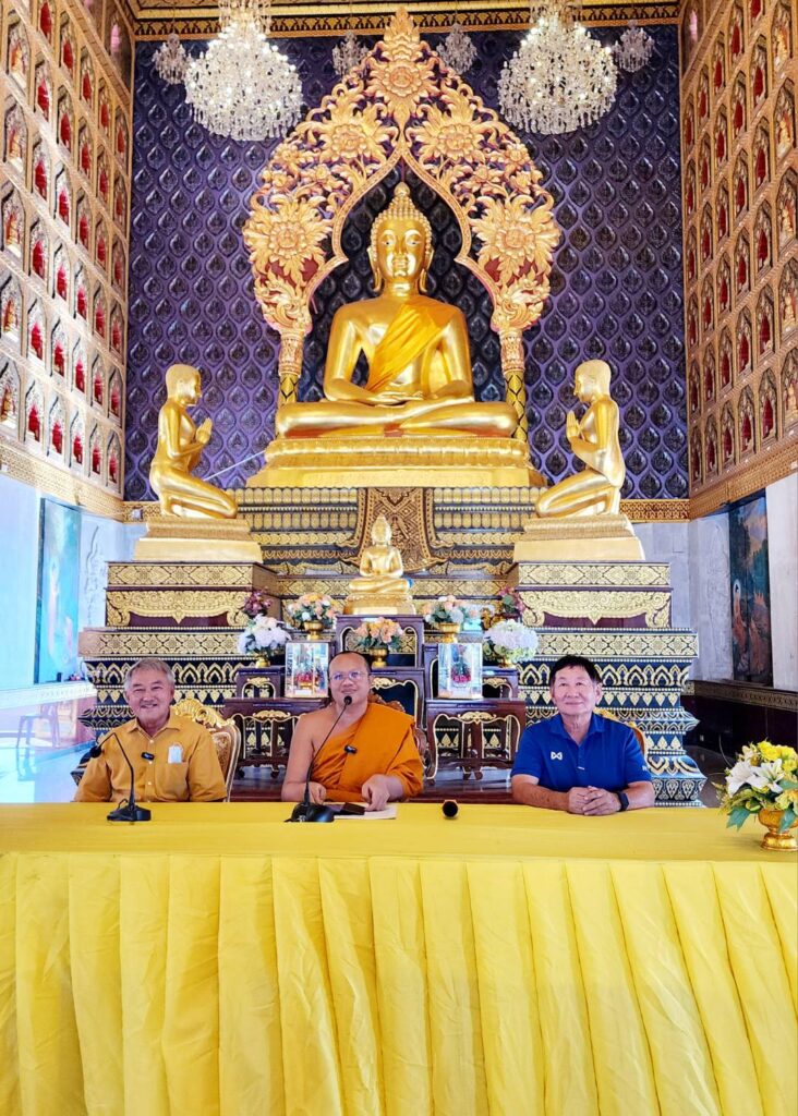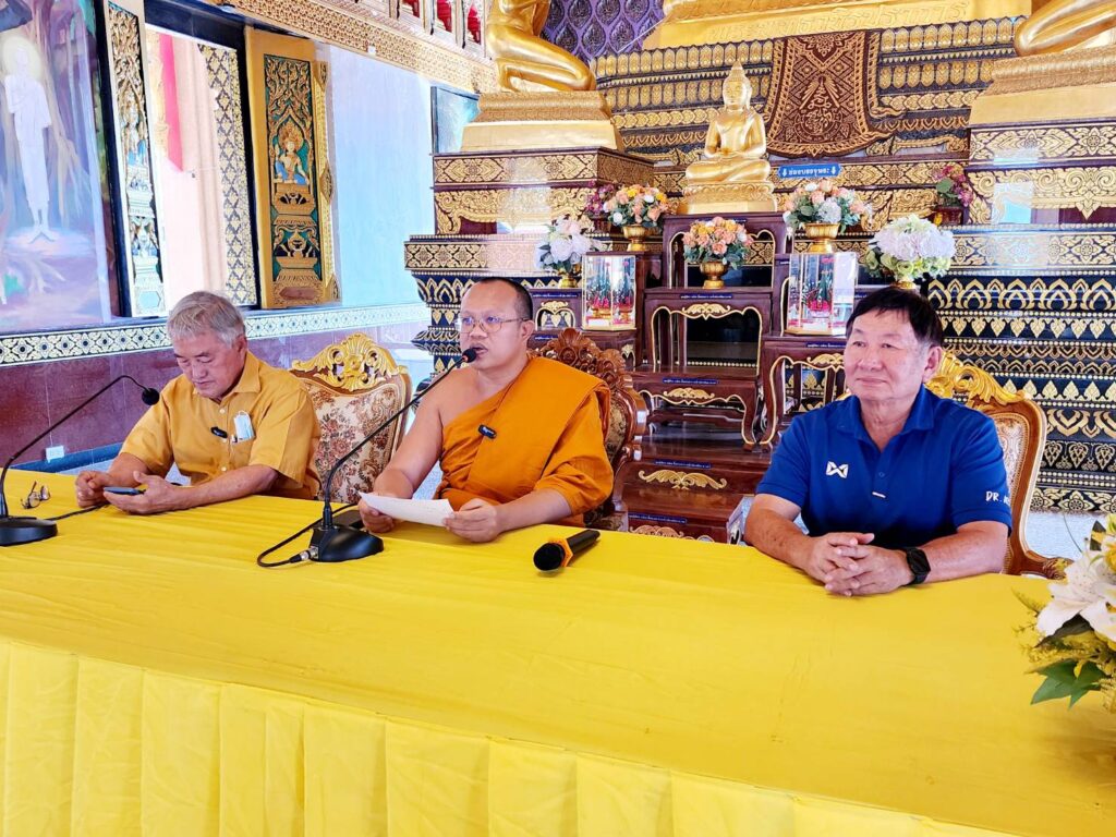 วันที่ 15 ม.ค.67 ที่พระอุโบสถ 2 ชั้น วัดป้อมวิเชียรโชติการาม พระอารามหลวง ต.มหาชัย อ.เมือง จ.สมุทรสาคร พระมหาไพฑูรย์ ภทฺทจารี ผู้ช่วยเจ้าอาวาสพระอารามหลวง วัดป้อมวิเชียรโชติการาม พร้อมด้วย นายเกียรติศรี นุตาลัย ไวยาวัจกร วัดป้อมวิเชียรฯ และนายณัฐวุฒิ เอกจิโรภาส นายกสมาคมผู้สื่อข่าวจังหวัดสมุทรสาคร ร่วมแถลงข่าวการจัดงานปิดทองฝังลูกนิมิต วัดป้อมวิเชียรโชติการามฯ