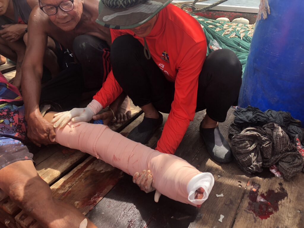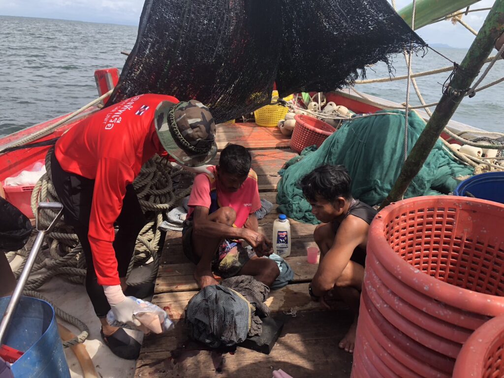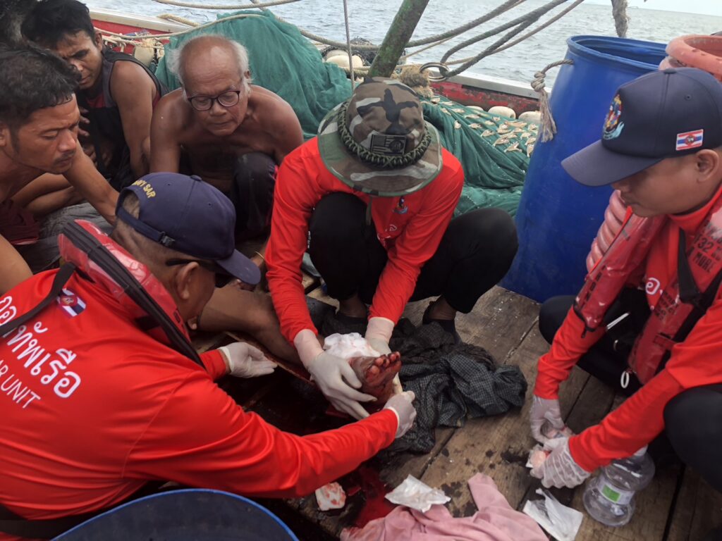 หลังจากที่ศูนย์รับแจ้งเหตุ ทรภ.3 1696 (สายด่วน ทรภ.๓) ได้รับแจ้งจากนายอรุณ ชูประสิทธิ์ ไต๋เรือ ว่า นายเวร อายุ 56 ปี เป็นชาวเมียนมาลูกเรือประมงอวนครอบปลากะตักชื่อ ณรงค์ชัยวารี 7 ประสบอุบัติเหตุถูกสายสมอเรือพันขาขณะทิ้งสมอได้รับบาดเจ็บบริเวณข้อเท้าซ้ายเกือบขาดอาการสาหัส นรภ.ทร.เกาะหลีเป๊ะ จึงได้จัดกำลังพล และเรือ RIB เดินทางเข้าให้การช่วยเหลือทำการห้ามเลือดด้วยการใช้ผ้าก๊อซชุบน้ำเกลือปิดบริเวณบาดแผล และดามกระดูกข้อเท้าให้อยู่นิ่งป้องกันการฉีกขาดและได้รับบาดเจ็บเพิ่มเติม พร้อมกับนำผู้ป่วยขึ้นฝั่งที่สถานีเรือละงู นำส่งรถกู้ชีพฉุกเฉิน รพ.ละงู ทำการรักษาพยาบาลต่อไป