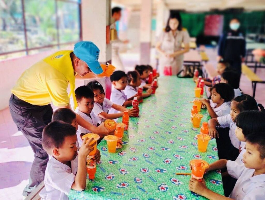 โอกาสเดียวกันยังได้ นำน้ำผลไม้ ไปมอบให้กับเด็กนักเรียน ในโครงการอาหารกลางวัน เพื่อเพิ่มโภชนาการให้แก่เด็ก ตามที่กองทัพบกกำหนดให้ หน่วยงานทหารในพื้นที่ เป็นสื่อกลาง เพื่อรับบริจาค หนังสือ ตำราเรียน และสิ่งของอื่นๆ อันเป็นประโยชน์ ทางด้านการศึกษา นำไปมอบให้กับเด็กและเยาวชนที่ขาดแคลน ในโรงเรียนต่างๆ อันจะเป็นการส่งเสริมให้เด็ก และเยาวชน ผู้เป็นอนาคตของชาติ ได้ศึกษาหาความรู้เพิ่มพูนประสบการณ์และเปิดโลกทัศน์ ให้กว้างขวางยิ่งขึ้น