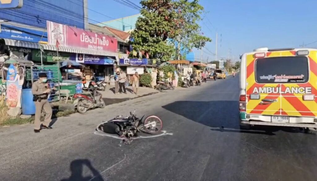 55 ม.9 ต.โคกสำโรงอ.โคกสำโรง จ.ลพบุรี คนขับขี่รถจักรยานยนต์แต่ไม่สวมหมวกนิรภัย