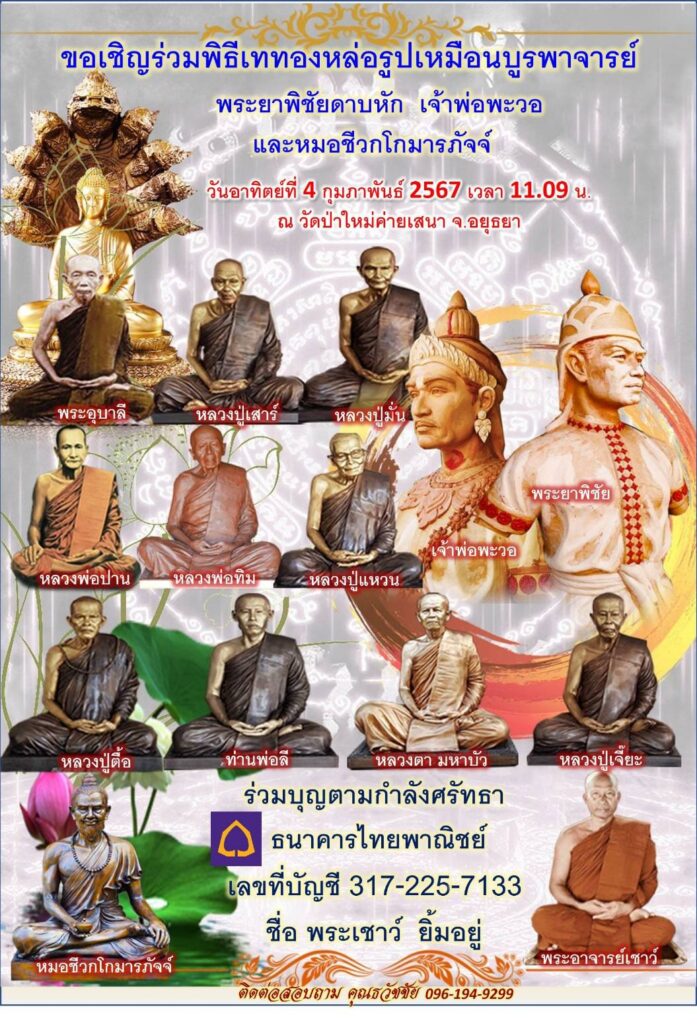 พิธีเททองหล่อรูป เหมือนบูรพาจารย์ ปู่ชีวกโกมารภัจจ์ พระยาพิชัยดาบหักและเจ้าพ่อพะวอ วัดป่าใหม่ค่ายเสนา อ.เสนา จ.อยุธยา