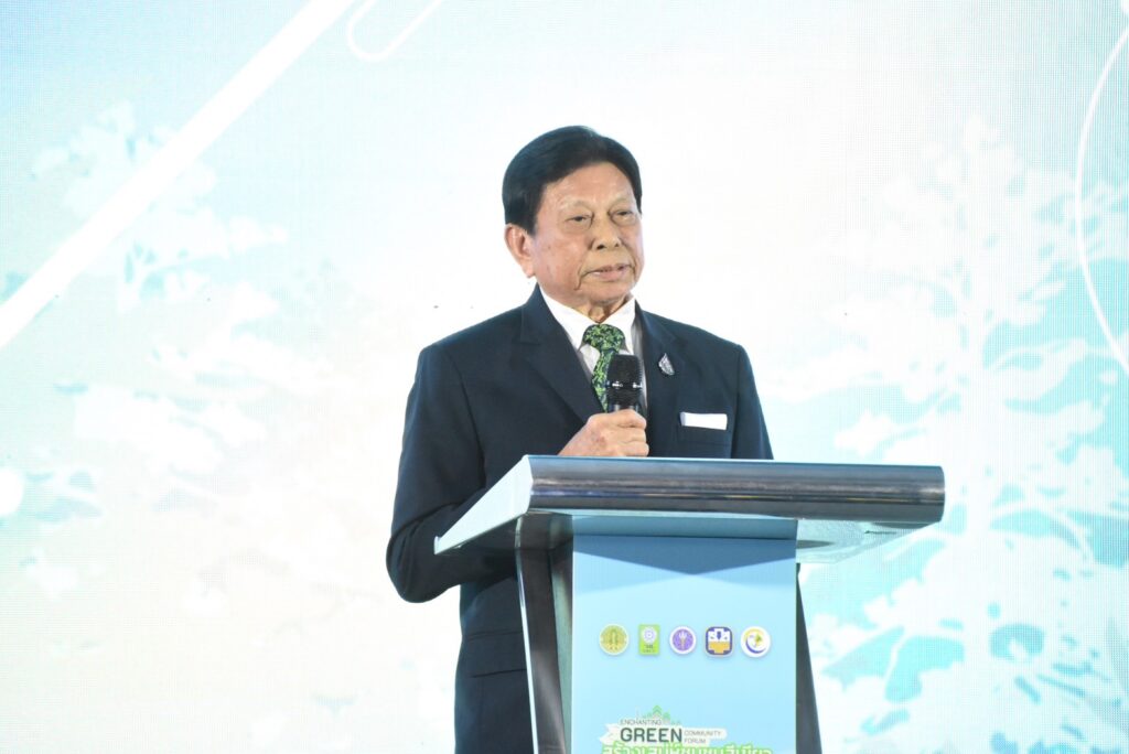 ศ.ดร.สนิท อักษรแก้ว กล่าวในการบรรยายพิเศษ เรื่อง “ชุมชนไม้มีค่า เพิ่มป่า เพิ่มรายได้ให้ชุมชน” ว่า ถ้าเราไม่ใช้ป่าชุมชนมาแก้ปัญหาเรื่องป่าไม้จะมีความลำบากในอนาคต ซึ่งวาระสำคัญของของโลก ต้องก้าวข้ามปัญหาวิกฤตที่ครอบคลุมอยู่สี่ประเด็นสำคัญ ประเด็นแรก คือ การเปลี่ยนแปลงสภาวะภูมิอากาศ หรือ สภาวะโลกร้อน ประเด็นที่สอง คือ การเป็นสมาชิก UN เราต้องมีการรายงานเป้าหมายเรื่องคาร์บอน ซึ่งประเทศไทยได้ร่วมลงนามที่จะมุ่งสู่การเป็นประเทศที่มีความเป็นกลางทางคาร์บอน จึงต้องมีพื้นที่สีเขียวที่เป็นที่กักเก็บคาร์บอน ประเด็นที่สามเรื่อง การกำหนดพื้นที่ป่าไม้ให้ชัดเจน ประเทศไทยตั้งเป้าหมายว่าต้องมีป่าไม้ร้อยละ 40 ถึงจะสามารถพัฒนาสู่ความยั่งยืนได้ ปัจจุบันป่าอนุรักษ์ถือว่ามีเพียงพอ แต่สิ่งที่น่าเป็นห่วงคือป่าเศรษฐกิจ ที่มีเพียงร้อยละ 15 หรือประมาณ 48 ล้านไร่ จึงต้องนำโครงการนี้ไปดำเนินการผลักดัน และต้องวางเป้าหมายภายใน 10 ปีข้างหน้า เพื่อเพิ่มพื้นที่ป่าเศรษฐกิจที่ขาดอยู่ ประเด็นที่สี่ คือ การยกระดับเศรษฐกิจฐานรากเพื่อให้สอดรับในแผนพัฒนาเศรษฐกิจและสังคมแห่งชาติ ฉบับที่ 13 ที่เน้นเศรษฐกิจชุมชนฐานรากให้เกษตรกรได้มีคุณภาพชีวิตที่ดีขึ้น ซึ่งรัฐบาลได้เอาจริงเอาจังในเรื่องนี้ โดยแผน 10 ปี จะต้องยกระดับรายได้ 2.6 ล้านครัวเรือน มีต้นไม้ 1,040 ล้านต้น มีป่าเศรษฐกิจเพิ่มขึ้น 26 ล้านไร่ คิดมูลค่าทางเศรษฐกิจถึง 1,000 ล้านบาท ซึ่งพื้นที่ในการปลูกป่าชุมชนของประเทศไทยถือว่าได้เปรียบสามารถปลูกป่าได้ทุกที่ทุกระดับของประเทศ