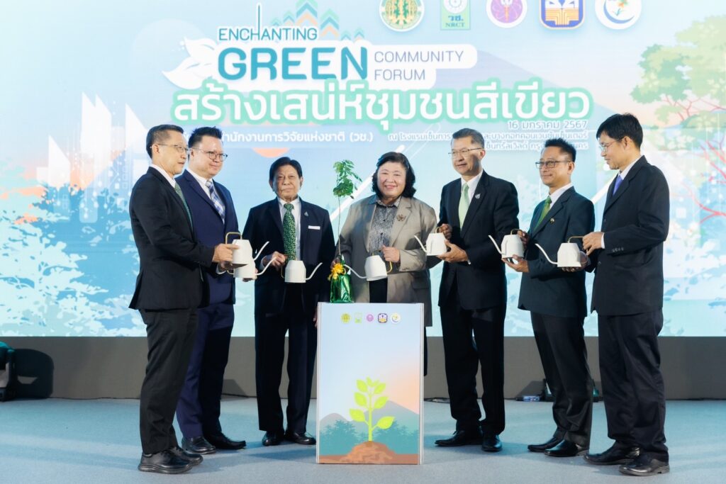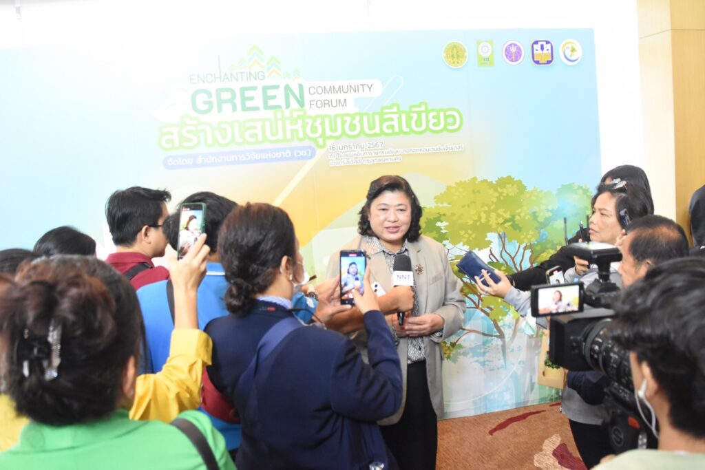 เมื่อวันที่ 16 มกราคม 2567 สำนักงานการวิจัยแห่งชาติ (วช.) กระทรวงการอุดมศึกษา วิทยาศาสตร์ วิจัยและนวัตกรรม (อว.) ร่วมกับ หน่วยงานภาคีเครือข่าย จัดงานฟอรั่มไม้มีค่า “สร้างเสน่ห์ชุมชนสีเขียว: Enchanting Green Community” เพื่อผลักดันให้เกิดการนำผลงานโครงการชุมชนไม้มีค่าไปสู่การใช้ประโยชน์ได้อย่างเป็นรูปธรรม โดยมี ดร.วิภารัตน์ ดีอ่อง ผู้อำนวยการสำนักงานการวิจัยแห่งชาติ (ผอ.วช.) เป็นประธานเปิดงาน พร้อมนี้ คณะผู้บริหาร (วช.) และหน่วยงานภาคีเครือข่าย ให้การต้อนรับ และร่วมรับฟังบรรยายพิเศษ เรื่อง “ชุมชนไม้มีค่า เพิ่มป่า เพิ่มรายได้ให้ชุมชน” โดย ศ.ดร.สนิท อักษรแก้ว ประธานสภาพัฒนาการเศรษฐกิจและสังคมแห่งชาติ และประธานคณะอนุกรรมการขับเคลื่อนชุมชนไม้มีค่า และมีผู้บริหารจากหน่วยงานและสถาบันการศึกษาต่างๆ ผู้นำชุมชน นิสิต นักศึกษา และสื่อมวลชน ให้ความสนใจเข้าร่วมงานดังกล่าวจำนวนมาก ณ ห้อง World Ballroom ชั้น 23 โรงแรมเซ็นทาราแกรนด์และบางกอกคอนเวนชันเซ็นเตอร์ เซ็นทรัลเวิลด์ กรุงเทพมหานคร