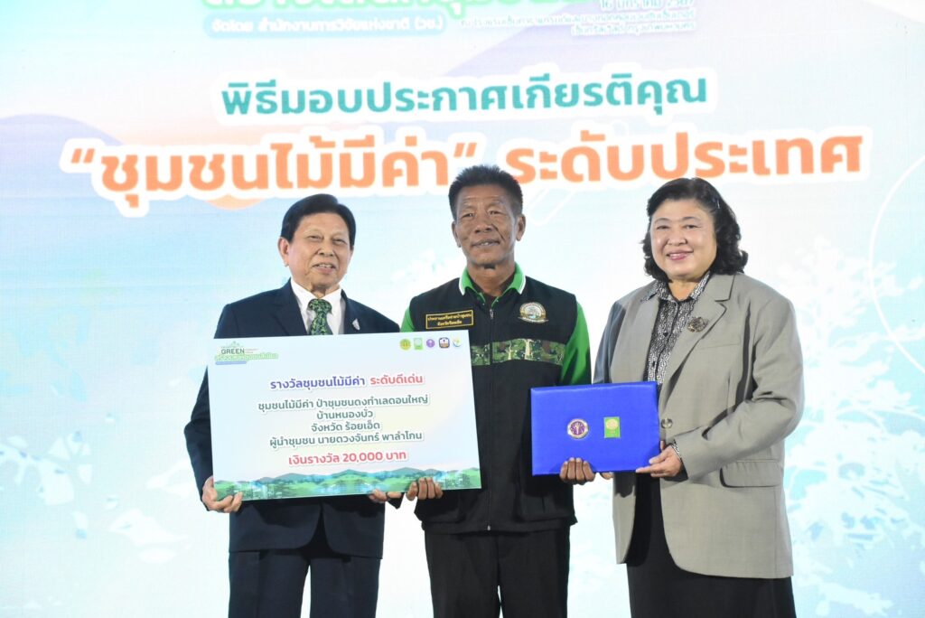 ดร.วิภารัตน์ ดีอ่อง ผู้อำนวยการสำนักงานการวิจัยแห่งชาติ (ผอ.วช.) กล่าวว่า (วช.) ภายใต้กระทรวง (อว.) ร่วมกับหน่วยงานภาคีเครือข่าย ได้แก่ สำนักงานพัฒนาเศรษฐกิจจากฐานชีวภาพ (องค์การมหาชน),กรมป่าไม้ และธนาคารเพื่อการเกษตรและสหกรณ์การเกษตร จัดงานฟอรั่มไม้มีค่า “สร้างเสน่ห์ชุมชนสีเขียว: Enchanting Green Community” เพื่อเผยแพร่องค์ความรู้ ผลงานวิจัย เทคโนโลยี และนวัตกรรม ให้แก่หน่วยงานภาครัฐที่เกี่ยวข้อง ภาคเอกชนที่ร่วมขับเคลื่อน เครือข่ายผู้ใช้ประโยชน์ รวมถึงประชาชนทั่วไปอย่างกว้างขวาง รวมทั้งสร้างโอกาสการพบปะเพื่อแลกเปลี่ยนข้อคิดเห็น ข้อเสนอแนะและผลักดันให้มีการนำผลงานเหล่านั้นไปต่อยอดและใช้ประโยชน์ในเชิงพื้นที่/ชุมชน ซึ่งจะเป็นอีกหนึ่งช่องทางที่สำคัญของความสำเร็จในการขับเคลื่อนโครงการชุมชนไม้มีค่าให้เป็นที่รู้จักแพร่หลายในวงกว้าง และการจัดงานในครั้งนี้ถือเป็นครั้งแรกที่มีการจัดพิธีประกาศเกียรติคุณ “ชุมชนไม้มีค่า” ระดับประเทศ รวมทั้งการสร้างทูตเยาวชน “ชุมชนไม้มีค่า” การจัดงานฟอรั่มไม้มีค่าในครั้งนี้ ถือเป็นการผสานพลังความร่วมมือและบูรณาการที่เชื่อมโยงกันจากทุกภาคส่วน เพื่อสนับสนุนให้เกิดการเพิ่มพื้นที่ป่า ซึ่งส่งผลทั้งในเชิงเศรษฐกิจ สังคม และสิ่งแวดล้อม สามารถลดจำนวนก๊าซคาร์บอนไดออกไซด์ และสร้างความสมดุลของระบบนิเวศอย่างยั่งยืนต่อไป