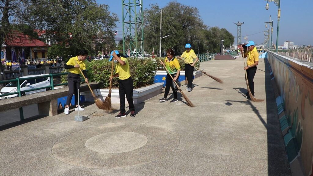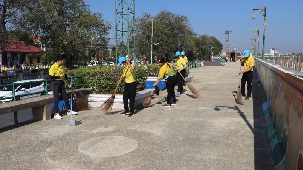 ต่อจากนั้น เวลา 9.30 น. ณ ศาลากลางจังหวัดสิงห์บุรีหลังเดิม นายวราดิศร อ่อนนุช รองผู้ว่าราชการจังหวัดสิงห์บุรี นำหัวหน้าส่วนราชการ พลเรือน ตำรวจ ทหาร กำนัน ผู้ใหญ่บ้าน และประชาชนจิตอาสาพระราชทาน ร่วมกิจกรรมปรับปรุงภูมิทัศน์และเก็บขยะตลอดแนวบริเวณริมเขื่อนแม่น้ำเจ้าพระยา พัฒนาสถานที่สาธารณประโยชน์ของจังหวัดสิงห์บุรี ซึ่งวันที่ 18 มกราคม ของทุกปี รัฐบาลจึงกำหนดให้เป็นวันกองทัพไทย วันยุทธหัตถี และวันสมเด็จพระนเรศวรมหาราช เพื่อระลึกถึงในวาระที่สมเด็จพระนเรศวรมหาราชทรงกระทำยุทธหัตถีและมีชัยชนะต่อพระมหาอุปราชาของพม่า
