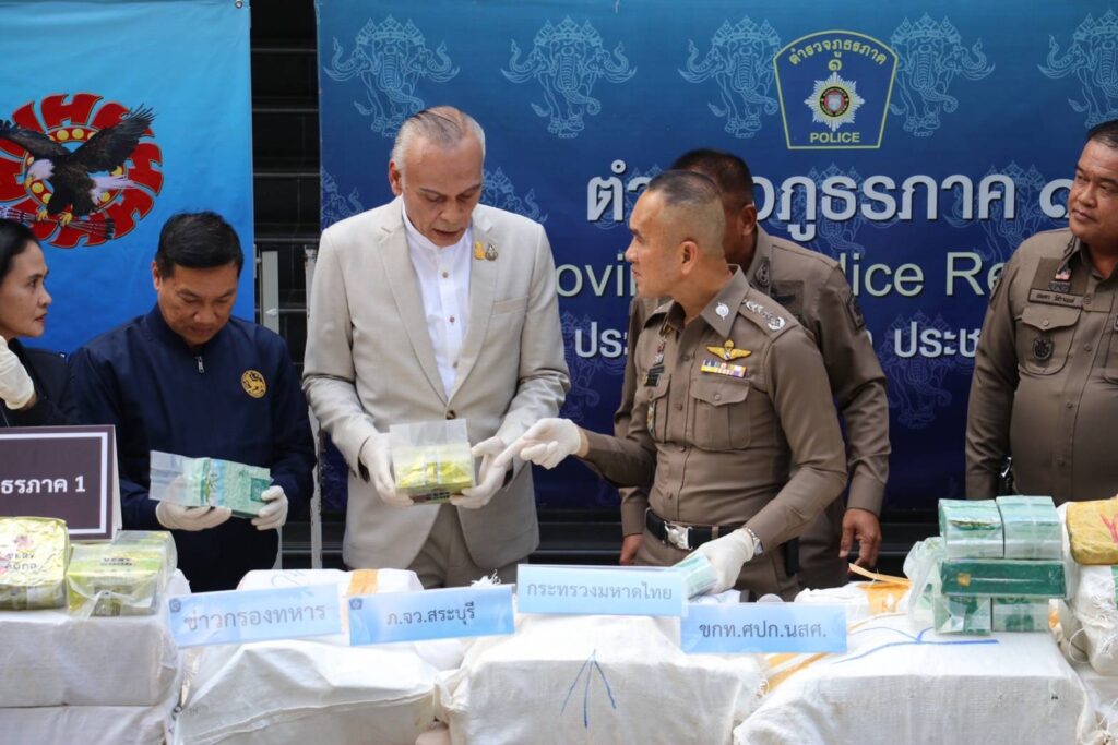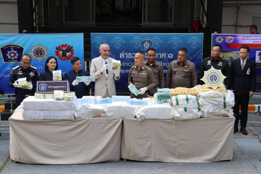 วันที่ 19 ม.ค.2567 เวลา 15.00 น. ณ ตำรวจภูธรภาค 1 : นาย ชาดา ไทยเศรษฐ์ รมช.กระทรวงมหาดไทย พร้อมด้วย นาย อรรษิษฐ์ สัมพันธรัตน์ อธิบดีกรมการปกครอง,พล.ต.ท.จิรสันต์ แก้วแสงเอก ผบช.ภ.1 พร้อมคณะฯ ร่วมแถลงข่าวจับกุมยาเสพติด พร้อมของกลาง ยาบ้า จำนวน 7 กระสอบ ประมาณ 1,400,000 เม็ด,ไอซ์ จำนวน 5 กระสอบ ประมาณ 239 ก.ก. และ ยาเค จำนวน 5 กระสอบ ประมาณ 85 ก.ก.