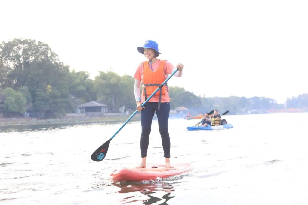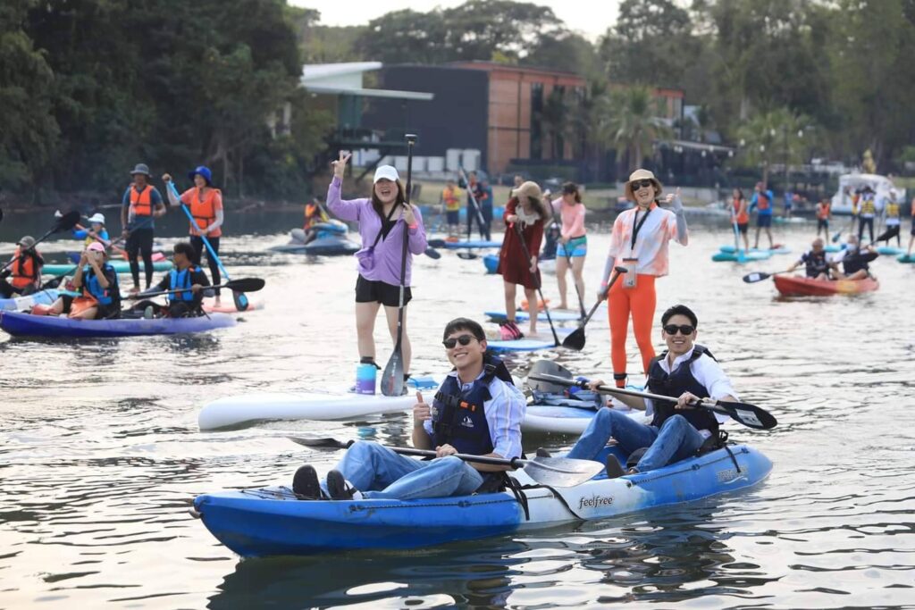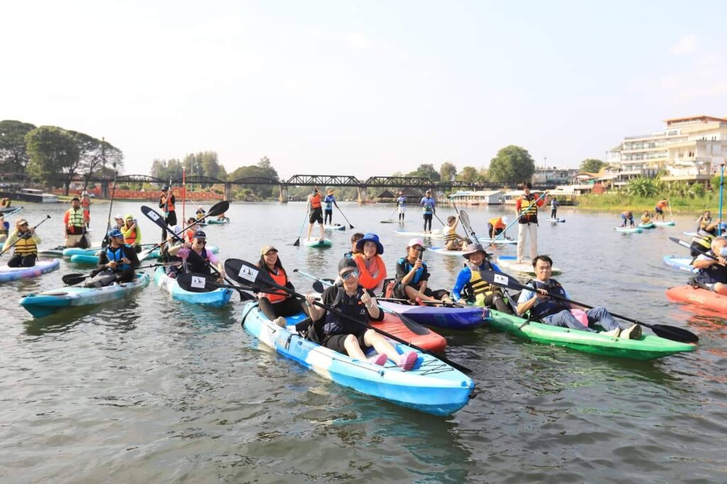 บ่ายวันนี้ (20 ม.ค.) ที่ลานกิจกรรมริมน้ำ Paddle More Thailand ถ.แม่น้ำแคว อ.เมือง จ.กาญจนบุรี นางสาวฐาปนีย์ เกียรติไพบูลย์ ผู้ว่าการการท่องเที่ยวแห่งประเทศไทย (ททท.) พร้อมด้วยแขกผู้มีเกียรติ และทีมศิลปินดารา เดินทางเข้าร่วมงาน “วิถีศรัทธา ทอดผ้าป่าทางน้ำ” และ “ซุปตาร์พาทำบุญ” กิจกรรมท่องเที่ยวดี ๆ เพื่อสังคม จัดขึ้นเพื่อหาทุนทรัพย์จัดซื้ออุปกรณ์การแพทย์ และเป็นกองทุนไว้ดูแลผู้ป่วย โดยเฉพาะพระสงฆ์ที่อาพาธ ผู้พิการ และผู้ป่วยสูงอายุที่ยากไร้ ให้กับศูนย์สุขภาพพระสงฆ์ สมเด็จพระสังฆราช องค์ที่ 19 จังหวัดกาญจนบุรี โดยผู้ว่าการ ฯ ททท. ได้เข้าร่วมเวทีเสวนา แลกเปลี่ยนมุมมองเรื่องการท่องเที่ยวอย่างยั่งยืน ในหัวข้อ “Low Carbon สำคัญกับการท่องเที่ยวไทยอย่างไร” ร่วมกับ ดร.วีรศักดิ์ โค้วสุรัตน์ สมาชิกวุฒิสภา อดีตรัฐมนตรีว่าการกระทรวงการท่องเที่ยวและกีฬา ร้อยโท ทศพล ไชยโกมินทร์ ผู้ว่าราชการจังหวัดกาญจนบุรี และ รศ.ดร.ธรรมศักดิ์ ยีมิน ผู้อำนวยการแผนงานการท่องเที่ยวบนฐานมรดกทางธรรมชาติการท่องเที่ยวเป็นมิตรต่อสิ่งแวดล้อม และการท่องเที่ยวคาร์บอนสุทธิเป็นศูนย์ (บพข.) หลังจบการเสวนา ยังได้ร่วมกิจกรรมพาย SUP ในขบวนผ้าป่าทางน้ำ พร้อมกับทีมศิลปินดาราชื่อดังของเมืองไทย อาทิ เจมส์ – จิรายุ ตั้งศรีสุข, ก๊อต – จิรายุ ตันตระกูล เส้นทางเริ่มต้นจากลานริมน้ำแควใหญ่ Paddle More Thailand ถึงวัดถาวรวราราม (วัดญวน)