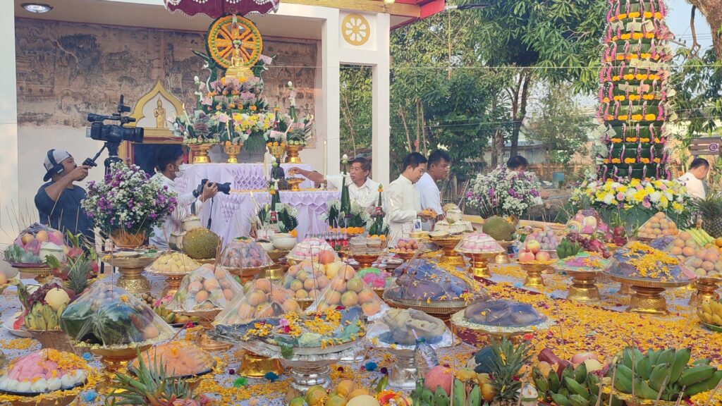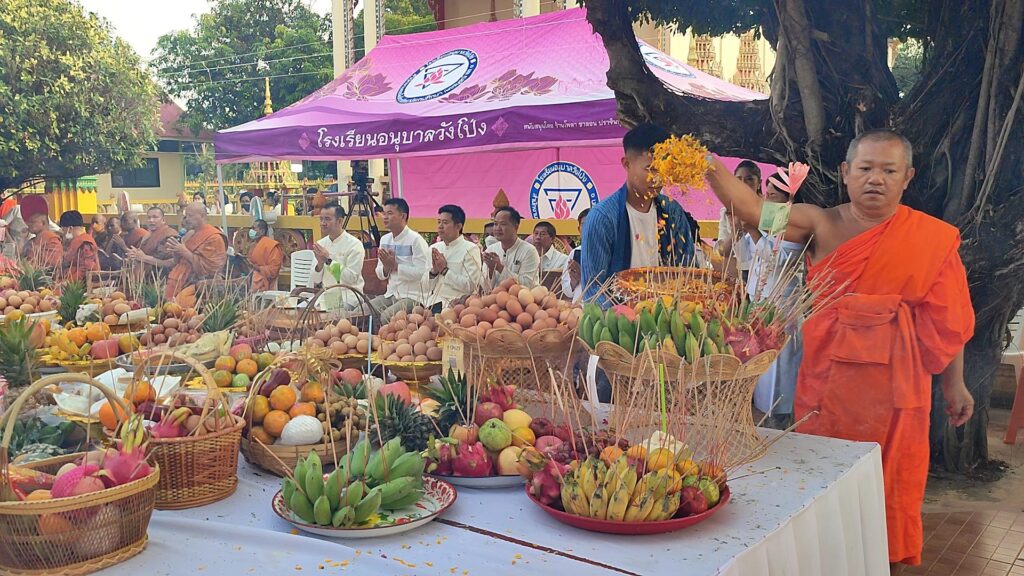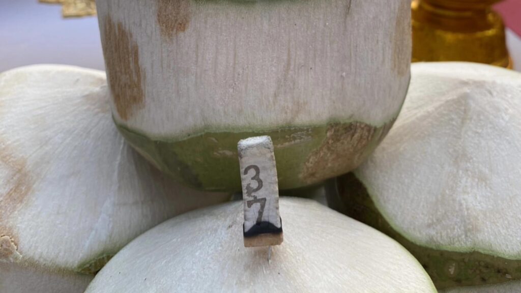 ซึ่งในขณะพระสงฆ์กำลังประกอบพิธีบวงสรวง หลวงพ่อเพชรศักดิ์สิทธิ์ นั้นชาวบ้านรายหนึงได้มองเห็นขวดน้ำแดงลักษณะเหมือนขวดน้ำสั่นไหวจึงเดินไปดูพบว่าน้ำแดงที่อยู่ในขวดเดือดเหมือนกับต้มน้ำร้อน สร้างความประหลาดใจให้กับชาวบ้านที่มาพิธีบวงสรวงหลวงพ่อเพชรศักดิ์สิทธิ์ หลังจากเสร็จสิ้นพิธีบวงสรวงหลวงพ่อเพชรศักดิ์สิทธิ์ ทางพุทธศาสนิกชนและชาวบ้าน ที่ได้นำเครื่องเซ่นไหว้และผลไม้ตามฤดูกาลมาเข้าร่วมประกอบพิธี ต่างนำเครื่องเซ่นไหว้และผลไม้ตามฤดูกาลของตนเอง กลับไปไว้ที่บ้านพร้อมแจกจ่ายญาติพี่น้อง เพื่อความเป็นสิริมงคลทั้งในชีวิตและครอบครัว ตามความเชื่อ ความศรัทธา ที่สืบทอดต่อกันมาแต่ช้านาน และในขณะเดียวกัน ชาวบ้านและคอหวยบางส่วน ก็ไม่พลาดที่จะพากันไปมุงดูขันน้ำมนต์ที่ผ่านการประกอบพิธีแล้วเสร็จ หวังหาเลขเด็ดไปเสี่ยงโชคตามความเชื่อ บางคนถึงกับนำโทรศัพท์มือถือขึ้นมาถ่ายรูป พร้อมส่งต่อให้คนรู้จัก โดยตัวเลขที่เห็นนั้น ก็ขึ้นอยู่กับแต่ละบุคคลที่จะมองเห็นลักษณะของน้ำตาเทียน ที่แตกต่างกันออกไป บางคนเห็นเป็นเลข 731 บางคนก็เห็นเลย 53 ส่วนธูปเสี่ยงทายเห็นเป็นเลข 37 นำไปเสี่ยงโชคกัน