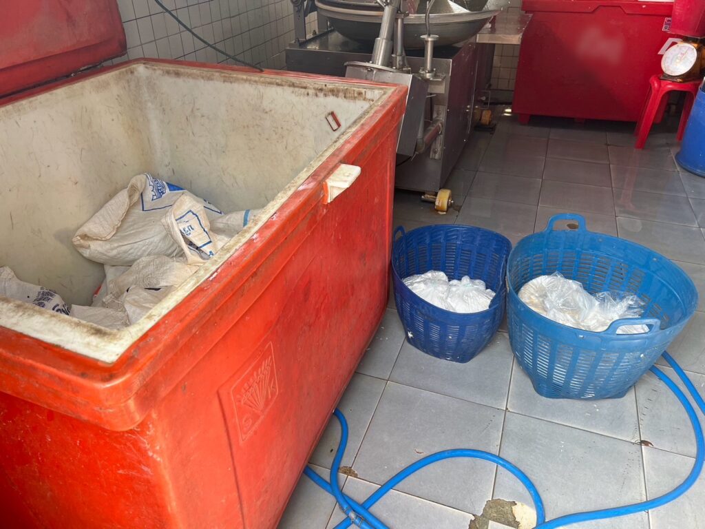 รวมตรวจค้น 2 จุด ตรวจยึดลูกชิ้นยี่ห้อต่างๆ กว่า 2,400 ถุง, เครื่องจักร, บรรจุภัณฑ์ และส่วนผสมต่างๆที่ใช้ในการผลิตลูกชิ้น รวมกว่า 31 รายการ โดยในครั้งนี้ตรวจพบลูกชิ้นไม่มียี่ห้อและมียี่ห้อรวม 9 ยี่ห้อ ดังนี้ 1.ลูกชิ้นหมูตราตี๋ใหญ่ฯ , 2.ลูกชิ้นหมูเมืองทอง ตราโกดี KODEE ,3. ลูกชิ้นหมูเมืองทองตราที.เค ,4.ลูกชิ้นหมูตราตี๋เล็ก ,5.ลูกชิ้นเนื้อตราตี๋ใหญ่ ,6.ลูกชิ้นเนื้อ ตรา เฮง ,7.ลูกชิ้นเนื้อตราเมืองเอก 8.ลูกชิ้นหมูAR , 9. ชาย2 ลูกชิ้นหมู