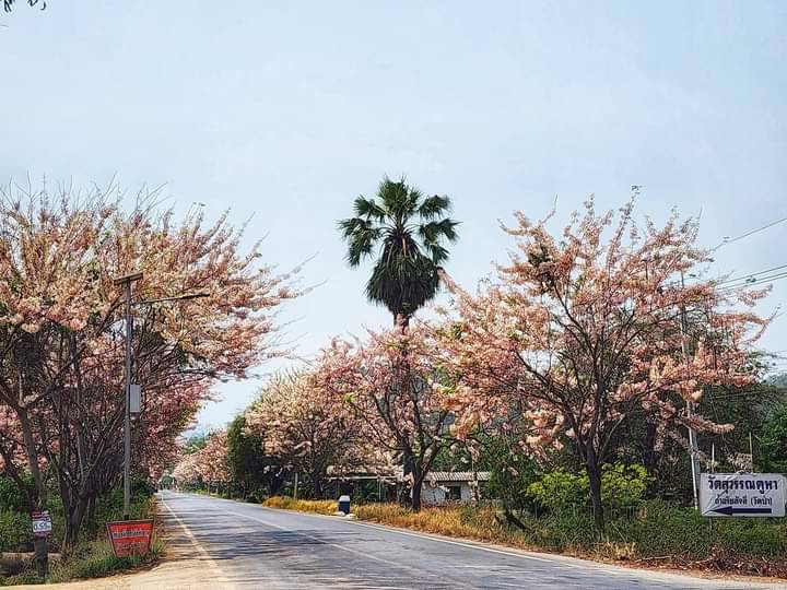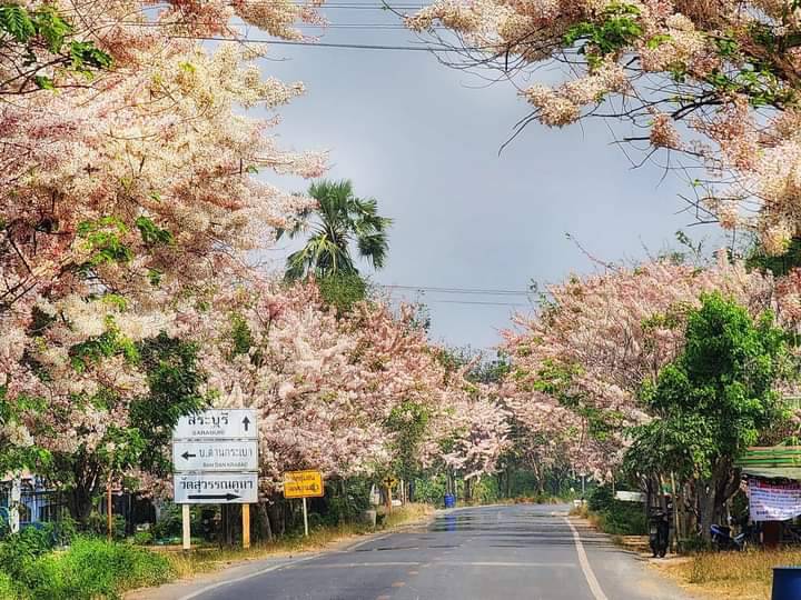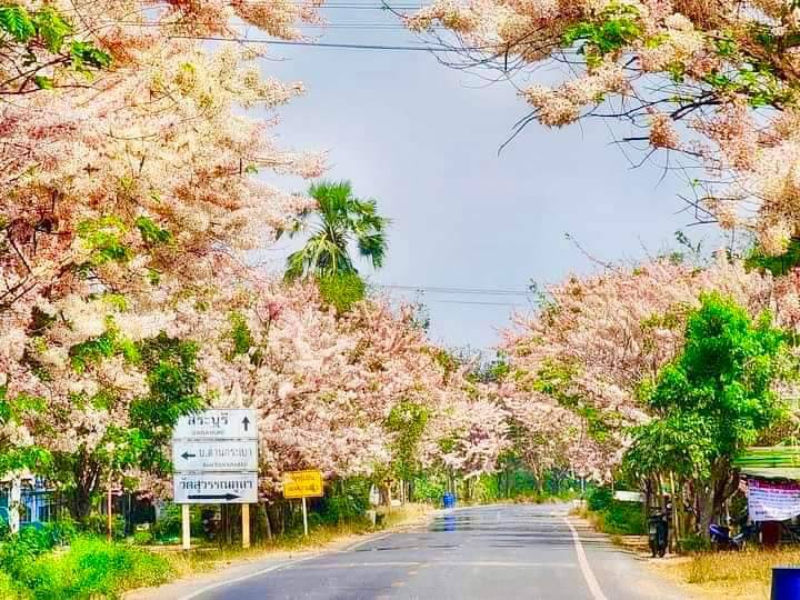 ถนนสายสีชมพูหวานเกินต้าน “ดอกกัลปพฤกษ์” ผลิบานสะพรั่งเต็มสองฝั่งถนนในอำเภอพัฒนานิคม จังหวัดลพบุรี ต้อนรับนักท่องเที่ยวในช่วงวันแห่งความรัก 14 กุมภาพันธ์ วันวาเลนไทน์ ปี2567