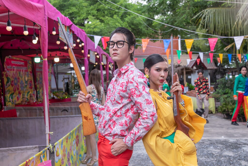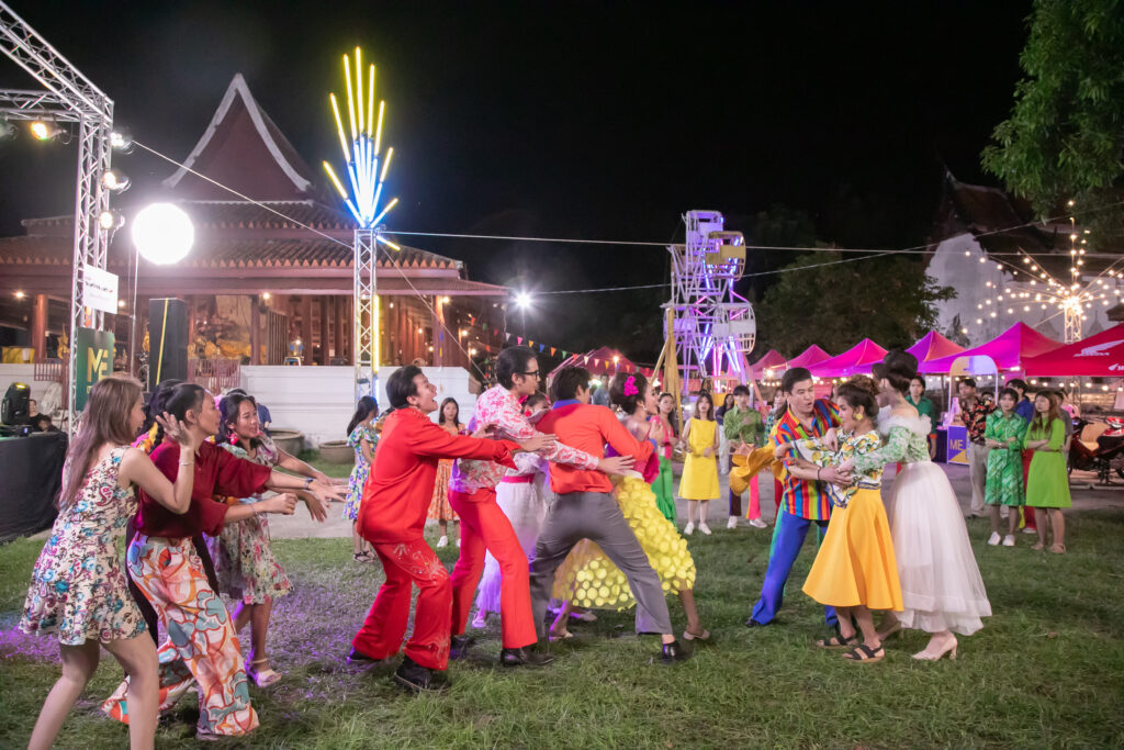 ไม่เพียงแค่นั้น ยังขนนักแสดงนำมาครบทีมที่จัดเต็มทั้งเสื้อผ้าสีสันสดใส หน้าผมย้อนยุค ทั้ง มิว-ศุภศิษฏ์, ชาล็อต ออสติน, คิมม่อน-วโรดม, เปา-กิ่งกาญจน์, ขวัญ ปิ่นทิพย์, ต้อม-รชนีกร, แจ็ค-ธนพล, เอ็กซ์-จาตุรงค์, โตนนท์ วงบุญ, หม่อมเอ็กซ์-อัศนัย, นูรดีน กาฮา, มาร์ค-คณัสนันท์, ถั่วแระ เชิญยิ้ม, กุ๊กกี้-มณเนตร, เล้ง-ณัฐพล, น้องอุ้ม-ใบเฟิร์น คำพันธุ์ และนักแสดงรับเชิญ น้องซินเซียร์-วรัทสิริกุล แตงนวน ร่วมด้วยนักแสดงสมทบกว่าร้อยชีวิต เพื่อเข้าฉากนี้โดยเฉพาะ!!!