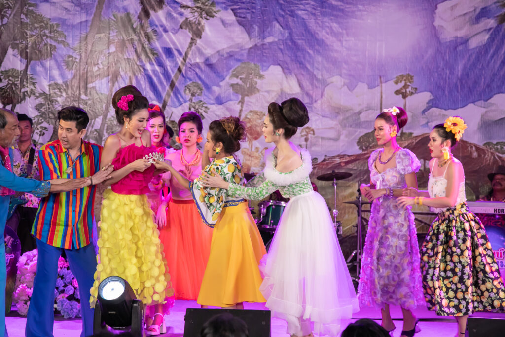 มาถึงฉากใหญ่ ฉากประกวดนางงาม ซึ่งขอบอกว่า….สนุกสนานมาก แต่ก่อนจะไปสนุกสนาน ก็เกือบจะมีเรื่องมีราวกัน เพราะ พ่อทองก้อน (แจ็ค ธนพล) เข้ามาต่อยหน้า คล้าว (มิว-ศุภศิษฏ์) ด้วยเหตุแอบกอด ทองกวาว (ชาล็อต ออสติน) ลูกสาวสุดหวง โดยมี แม่ทับทิม (ต้อม รชนีกร) โวยวายอยู่ข้างๆ เมื่อเหตุการณ์เกือบบานปลาย หนุ่มหน้ามนนิสัยไม่ค่อยจะดีอย่าง เจิด (โตนนท์ วงบุญ) พร้อมเพื่อนคู่หูก็ขี่มอเตอร์ไซด์เข้ามาขวาง แต่ที่เด็ดกว่านั้น กำนันจอม (เอ็กซ์ จาตุรงค์) ก็เข้ามาห้ามทัพ พร้อมประกาศกร้าวว่า…!!!