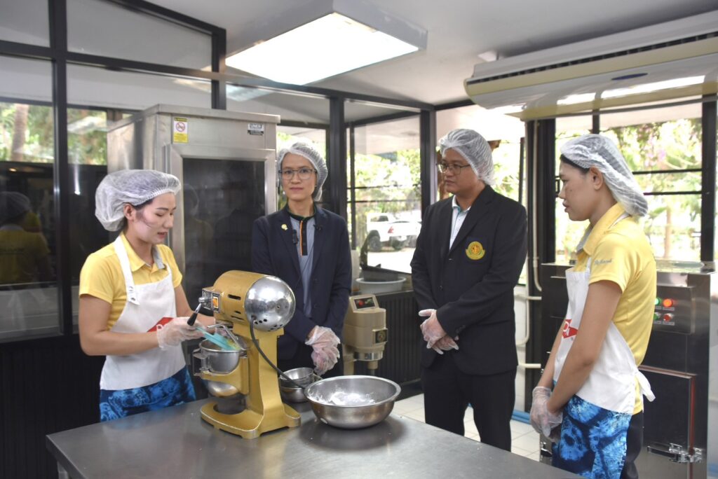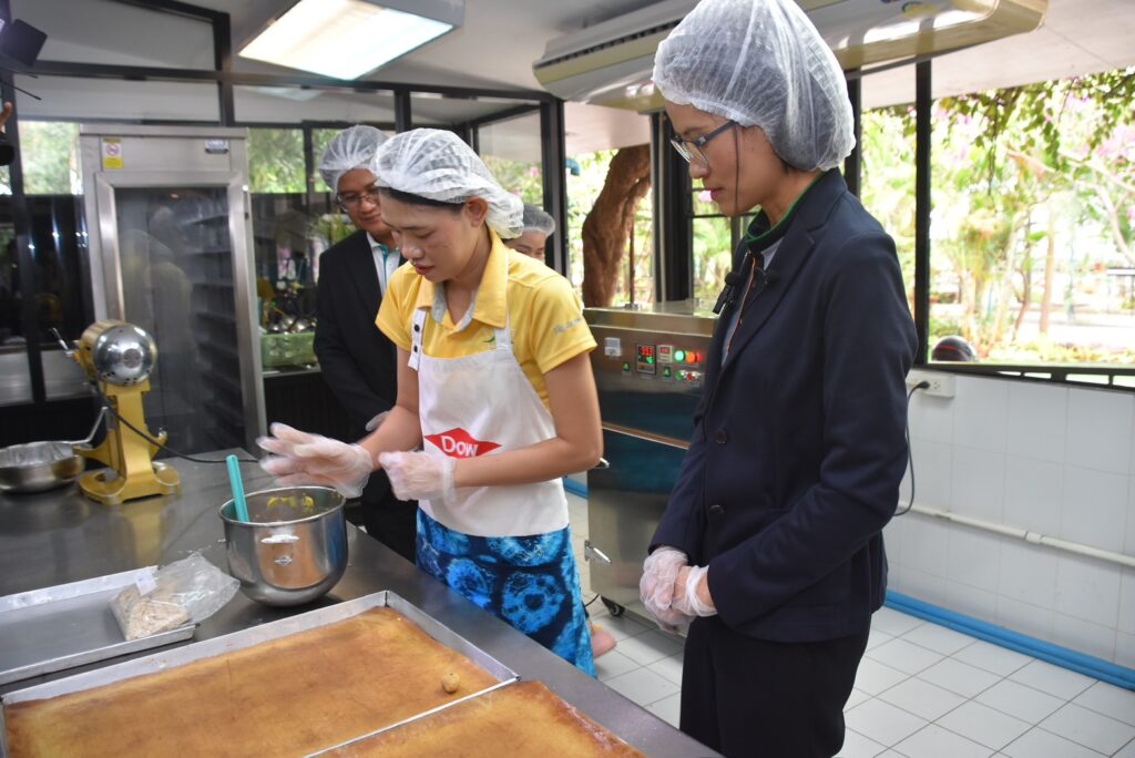 วันที่ 23 มกราคม 2567 สำนักงานการวิจัยแห่งชาติ (วช.) กระทรวงการอุดมศึกษา วิทยาศาสตร์ วิจัยและนวัตกรรม (อว.) ร่วมกับ กลุ่มบริษัท ดาวประเทศไทย ลงพื้นที่ติดตามผลสำเร็จจากงานวิจัยสู่การใช้ประโยชน์เชิงพาณิชย์ ผลการดำเนินงานโครงการ เรื่อง “การลดขยะกากถั่วเหลืองจากชุมชนและอุตสาหกรรมโดยนำไปแปรรูปเป็นแป้งโอคาร่าเพื่อใช้เป็นวัตถุดิบอาหารมูลค่าสูง” ซึ่ง (วช.) ให้การสนับสนุนทุนวิจัยแก่มหาวิทยาลัยเกษตรศาสตร์ ณ ร้านเบเกอรี่สคูล มูลนิธิคุณพ่อเรย์ จังหวัดชลบุรี