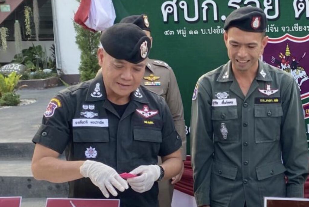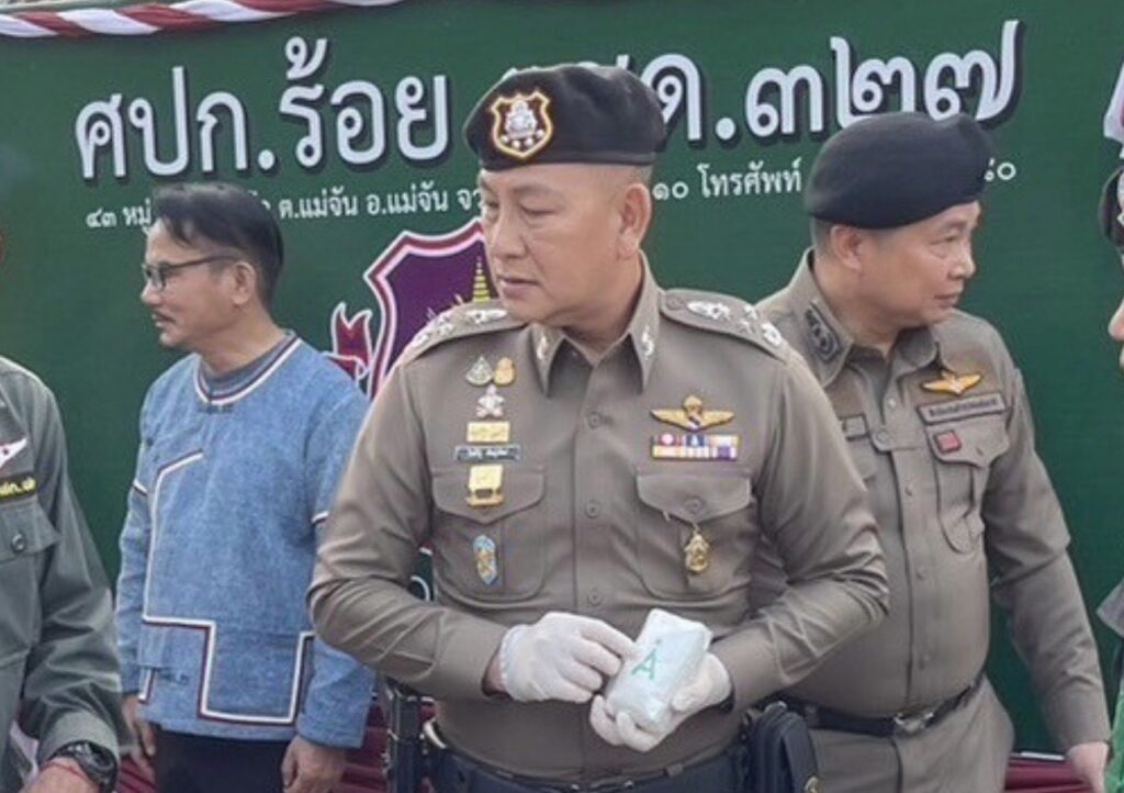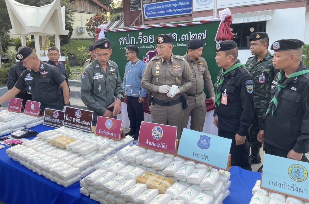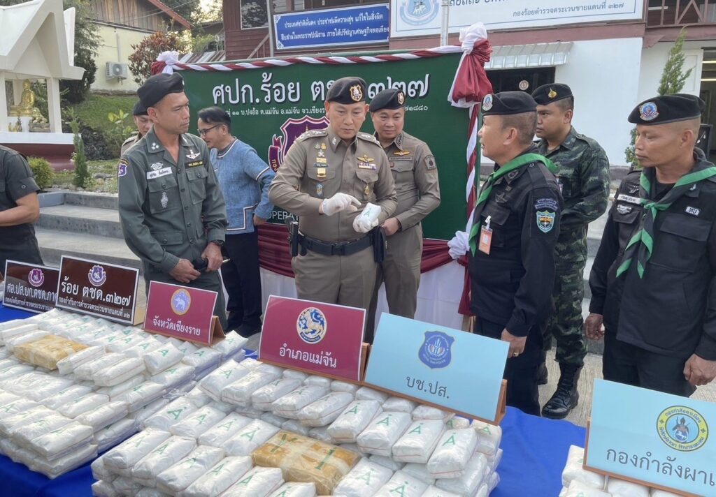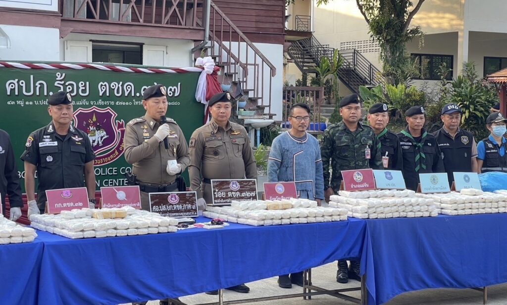 พล.ต.อ.กิตติ์รัฐฯ กล่าวว่า ตำรวจชุดปฏิบัติการของ กองร้อย ตชด.ที่ 327 ได้สืบสวนทราบว่า จะมีการลักลอบขนยาเสพติด (ยาบ้า) ล็อตใหญ่โดยจะใช้เส้นทางบ้านท่าข้าวเปลือก แม่จัน-ดอยหลวง ซึ่งเป็นเส้นทางที่ผู้ลักลอบจะหลบเลี่ยงการตรวจของเจ้าหน้าที่ และเข้าสู่เมืองเชียงราย จึงได้ประสานงานและวางแผนร่วมกับ ภ.จ.เชียงราย,บก.ปส.3,กองกำลังฝ่ายทหารและฝ่ายปกครองในพื้นที่ เพื่อบูรณาการในการตั้งจุดตรวจและวางจุดสกัด กระทั่งในวันที่ 22 ม.ค.2567 เวลา 22.00 น.ได้มีรถยนต์เก๋งต้องสงสัยตำหนิรูปพรรณตามข้อมูลที่ได้รับจากการสืบสวน ไม่หยุดให้ตรวจและหลบหนีการจับกุม จึงได้ทำการติดตาม สกัดกั้นและสามารถจับกุมได้ที่บริเวณแยกบ้านอาข่าบ้านท่าข้าวเปลือก ผลการตรวจค้นพบกระสอบสีดำ วางกองที่เบาะนั่งผู้โดยสารด้านหลัง จำนวน 8 ถุงใหญ่ เมื่อเปิดกระสอบพบยาเสพติด(ยาบ้า) จึงได้นำตัวผู้ต้องหาพร้อมของกลางมาที่กองร้อย ตชด.ที่ 327 ทำการตรวจพิสูจน์และนับจำนวน ต่อหน้าผู้ต้องหา ผลการตรวจสอบพบว่าเป็น เมทแอมเฟตตามีน และนับจำนวนได้ 2,100,000 เม็ด จึงได้นำตัวผู้ต้องหาพร้อมของกลาง นำส่งพนักงานสอบสวน สภ.แม่จัน เพื่อดำเนินคดีตามกฎหมาย