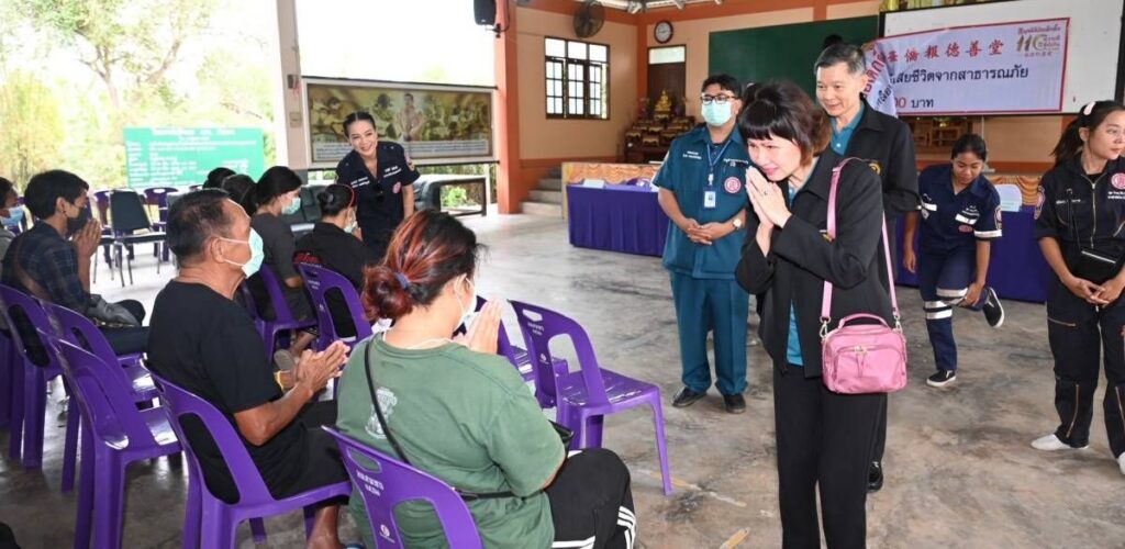 นายประทีป การมิตรี รองผู้ว่าราชการจังหวัดสุพรรณบุรี พร้อมด้วย อาสาสมัครมูลนิธิป่อเต็กตึ๊ง นำโดย ดร.ปภัสรา เตชะไพบูลย์ อาสาสมัครกิตติมศักดิ์ ร่วมในพิธี ณ องค์การบริหารส่วนตำบลศาลาขาว อำเภอเมือง จังหวัดสุพรรณบุรี