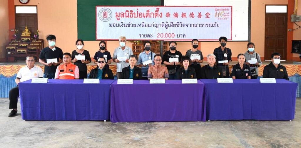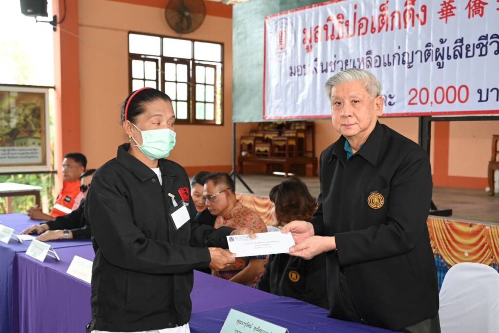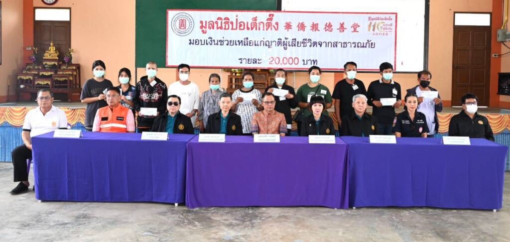 วันนี้ (วันพุธที่ 24 มกราคม 2567) มูลนิธิป่อเต็กตึ๊ง นำโดย นายวิชิต ชินวงศ์วรกุล รองประธานกรรมการ พร้อมด้วย นางศิริกุล โอภาสวงศ์ กรรมการและเลขาธิการ นายจารุรัตน์ คุณัตถานนท์ กรรมการและเหรัญญิก และ นายนิพนธ์ โชคภิรมย์วงศา กรรมการปฏิคม นำทีมแผนกสาธารณภัย ฝ่ายสังคมสงเคราะห์ นำโดย นางศิริพร กระจ่างหล้า ผู้จัดการฝ่ายสังคมสงเคราะห์ ลงพื้นที่องค์การบริหารส่วนตำบลศาลาขาว เพื่อเข้าพบพร้อมให้กำลังใจและมอบเงินช่วยเหลือค่าฌาปนกิจแก่ครอบครัวผู้เสียชีวิตจากเหตุการณ์ดังกล่าว รวม 23 รายๆ ละ 20,000 บาท รวมงบประมาณทั้งสิ้น 460,000 บาท (สี่แสนหกหมื่นบาทถ้วน) โดยมี