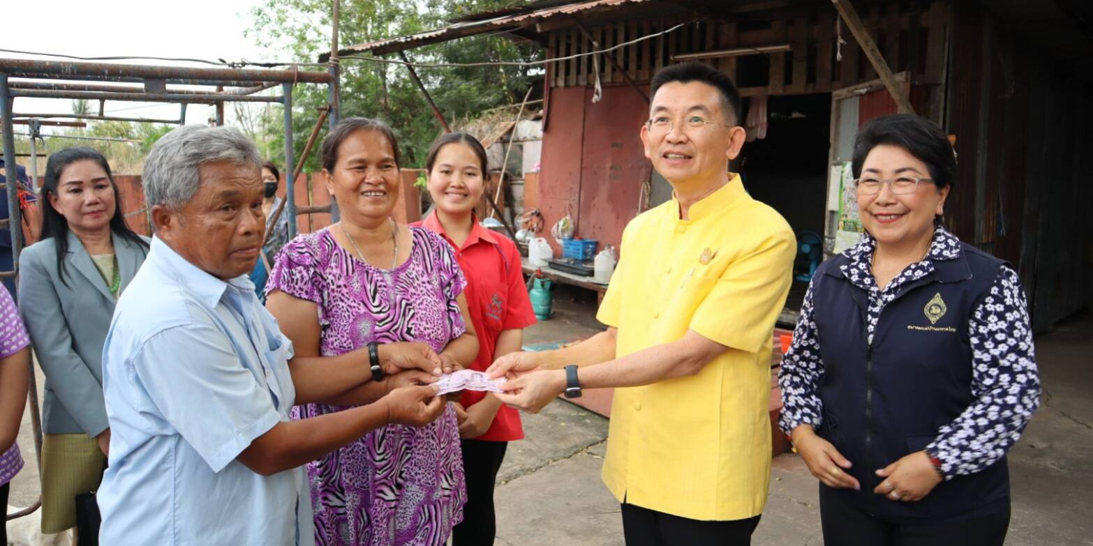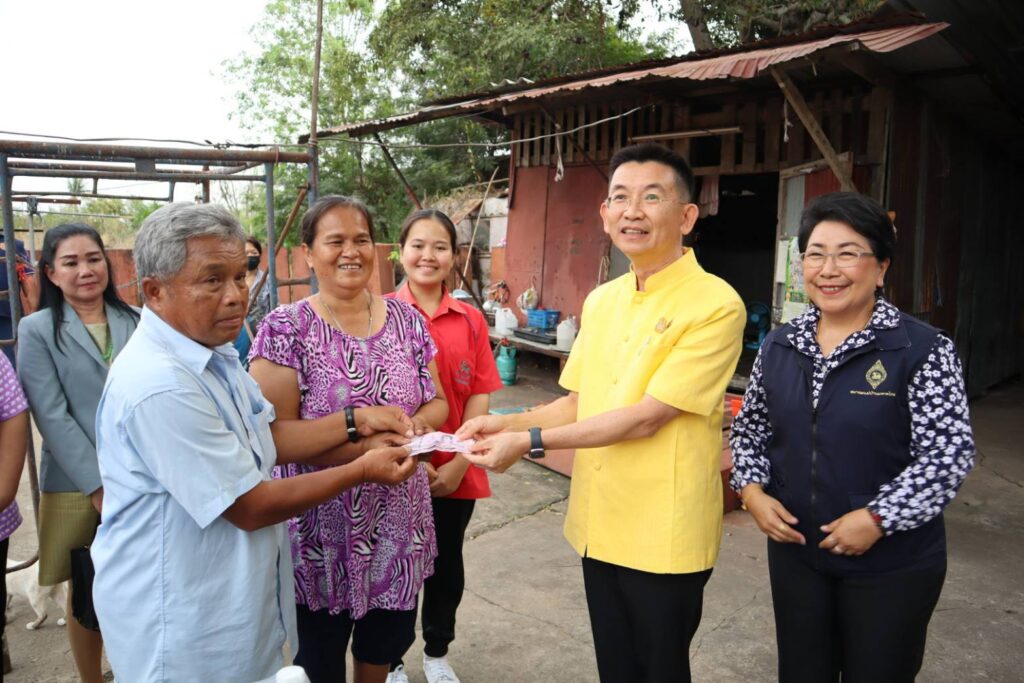 สิงห์บุรี-วันที่ 23 มกราคม 2567 เวลา 16.00 น. นายสุเมธ ธีรนิติ ผู้ว่าราชการจังหวัด สิงห์บุรี นางวาสนา ธีรนิติ นายกเหล่ากาชาดจังหวัดสิงห์บุรี/ประธานแม่บ้านมหาดไทยจังหวัดสิงห์บุรี พร้อมด้วย นายอำเภอ ผู้บริหารการศีกษา กรรมการเหล่ากาชาดจังหวัดสิงห์บุรี ปลัดอำเภอ สมาชิกชมรมแม่บ้านมหาดไทยจังหวัดสิงห์บุรี เจ้าหน้าที่เหล่ากาชาดจังหวัดสิงห์บุรี กำนัน และผู้ใหญ่บ้าน เยี่ยมครอบครัวนักเรียนทุนพระราชทาน ม.ท.ศ. ในพื้นที่อำเภอบางระจัน และอำเภอค่ายบางระจัน โดยเหล่ากาชาดจังหวัดสิงห์บุรี มอบเครื่องอุปโภค บริโภค รายละ 1 ชุด ให้แก่ครอบครัวนักเรียนทุน จำนวน 3 ราย ดังนี้