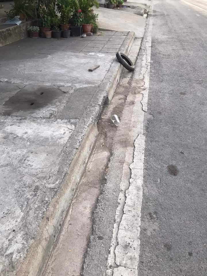 ณ ที่เกิดเหตุ ไม่มี ไม่มีตะแกรงเหล็ก ไต่ฟุตบาท ได้หายไป เมื่อก่อนนั้นได้วางเอาไว้ที่หน้าร้านเป็นประจำและไม่เคยหายมาวันนี้เกิดหายขึ้นมา
