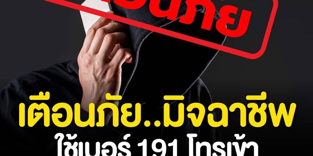 ตำรวจสอบสวนกลาง (CIB) จึงขอเตือนประชาชนว่าอย่าหลงเชื่อหมายเลขโทรเข้าที่เป็นเบอร์ 191 เพราะเบอร์โทร 191 เป็นหมายเลขเฉพาะที่ใช้สำหรับรับสายเหตุด่วนเหตุร้ายเท่านั้น ไม่สามารถเป็นหมายเลขโทรออกไปยังประชาชนได้