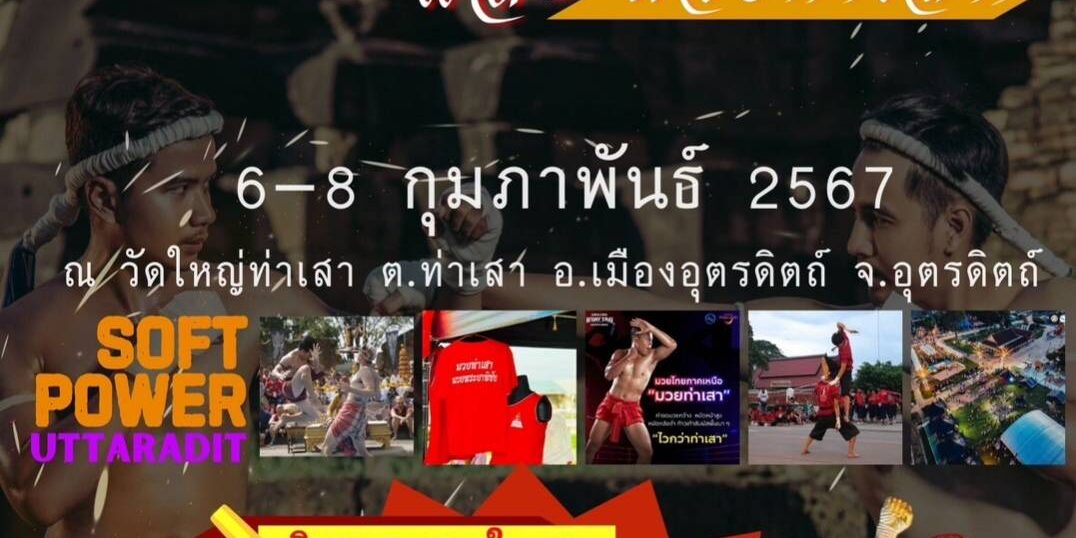 จึงขอเชิญชวนทุกท่านมาเที่ยวชม ชิม ช็อป และร่วมกันสืบสาน รักษา และต่อยอด มรดกภูมิปัญญามวยไทยพระยาพิชัยดาบหักและมวยท่าเสาด้วยกัน ในวันที่ 6-8 กุมภาพันธ์ 2567 นี้ ที่ วัดใหญ่ท่าเสา อำเภอเมือง จังหวัดอุตรดิตถ์ครับ