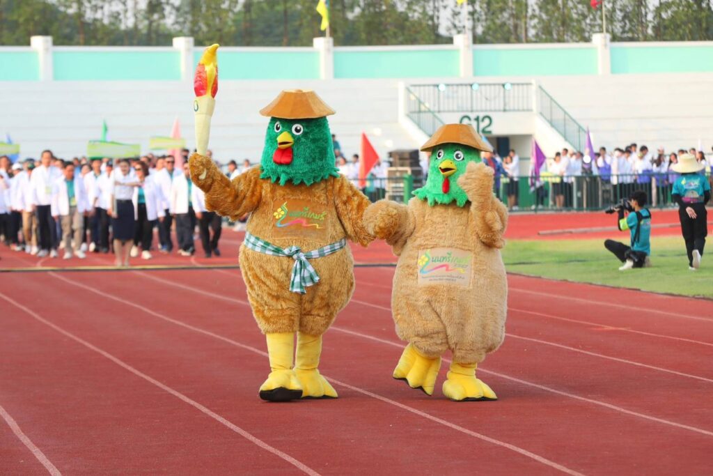 จะได้รับความสุขตลอดการแข่งขัน ภายใต้คำขวัญการจัดการแข่งขันที่ว่า “หลากหลายสู่สรรสร้าง สุขภาวะที่ยั่งยืน” นอกจากนี้ยังได้นำ “ไก่” มาเป็นสัญลักษณ์ของสัตว์นำโชคและให้ชื่อว่า “พี่แสน และ น้องแพง” ซึ่งสื่อถึงการพัฒนาการสร้างและเผยแพร่องค์ความรู้ทางด้านปศุสัตว์ของมหาวิทยาลัยเกษตรศาสตร์ ที่เริ่มจากไก่เป็นชนิดแรก และการจัดแข่งขันครั้งนี้จะจัดขึ้นที่วิทยาเขตกำแพงแสน ซึ่งเป็นวิทยาเขตหนึ่งของมหาวิทยาลัยที่มีความสวยงามและมีความพร้อมในเรื่องสนามและสิ่งอำนวยความสะดวกต่างๆ
