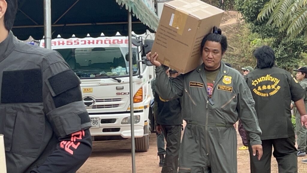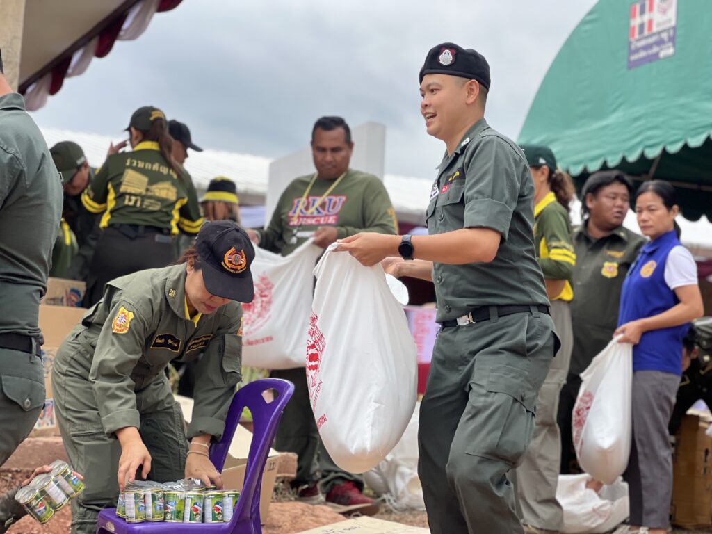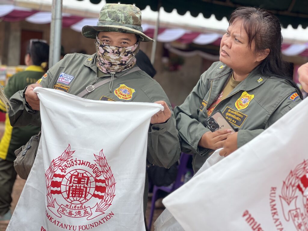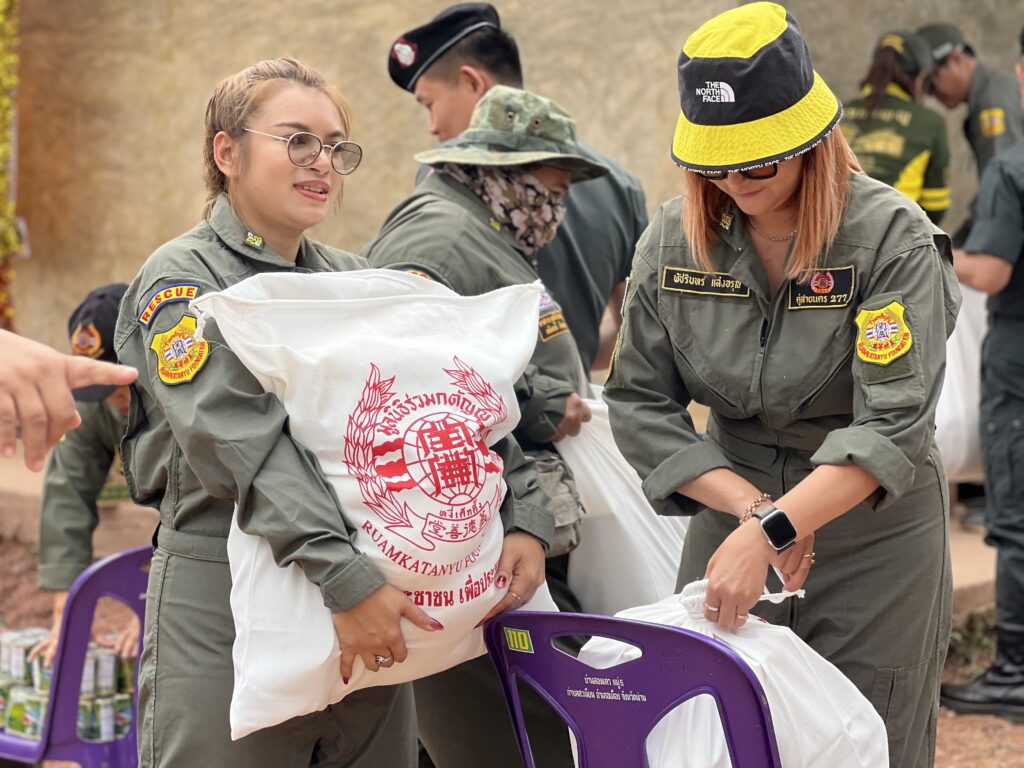 เมื่อวันที่ 27 มกราคม 2567 มูลนิธิร่วมกตัญญู นำโดย ดร.รัตนา สมสกุลรุ่งเรือง ประธานมูลนิธิฯ,คุณสมศักดิ์ ปาลวัฒน์ ผู้จัดการมูลนิธิฯ,คุณภาวิณี ปาลวัฒน์ รองผู้จัดการมูลนิธิฯ,คุณเอกพัน บรรลือฤทธิ์ หัวหน้าอาสาสมัครมูลนิธิฯ,คุณอธิวัฒน์ สนิทวงศ์ ณ อยุธยา รองหัวหน้าอาสาสมัครฯ,คุณอุษณียาภรณ์ ผลเจริญ,คุณฝอยทอง เชิญยิ้ม,คุณเกศริน เอกธวัชกุล ดาราฝ่ายประชาสัมพันธ์มูลนิธิฯ และกำลังเจ้าหน้าที่-อาสาสมัครมูลนิธิฯ ส่วนกลาง เดินทางลงพื้นที่พร้อมถุงยังชีพ-ผ้าห่มกันหนาว เพื่อนำไปมอบให้ประชาชน ณ หอประชุม อ.เมือง จ.น่าน ในส่วนของงาน ดร.รัตนา สมสกุลรุ่งเรือง ประธานมูลนิธิร่วมกตัญญู นำคณะผู้บริหาร-ดารา พร้อมด้วยนายชัยนรงค์ วงศ์ใหญ่ ผู้ว่าราชการจังหวัดน่าน,พล.ต.ต.ดเรศ กัลยา ผู้บังคับการตำรวจภูธรจังหวัดน่าน,นายดลภาค เนตรใส นายอำเภอเมืองน่าน,นายปิติพงษ์ บุญช่วง ปลัดอำเภอฝ่ายความมั่นคงจังหวัดน่าน ร่วมกันมอบถุงยังชีพ-ผ้าห่มกันหนาว ให้กับประชาชนชน และชนเผ่าพื้นเมือง เผ่าเมียน,เผ่าม้ง,เผ่าขมุก จำนวน 462 ชุด มอบเงินขวัญถุง ครอบครัวละ 200 บาท มอบเงินสนับสนุนผู้ทุพพลภาพ จำนวน 6 คน คนละ 1,000 บาท ในพื้นที่ ต.สะเนียน อ.เมือง จ.น่าน เพื่อช่วยบรรเทาทุกข์และเป็นกำลังใจสู้ภัยหนาวในปีนี้ รวมถึงยังมอบทุนอาหารกลางวัน ให้โรงเรียนละ 5,000 บาท และอุปกรณ์การเรียน-อุปกรณ์กีฬา จำนวนทั้งสิ้น 3 โรงเรียน ได้แก่