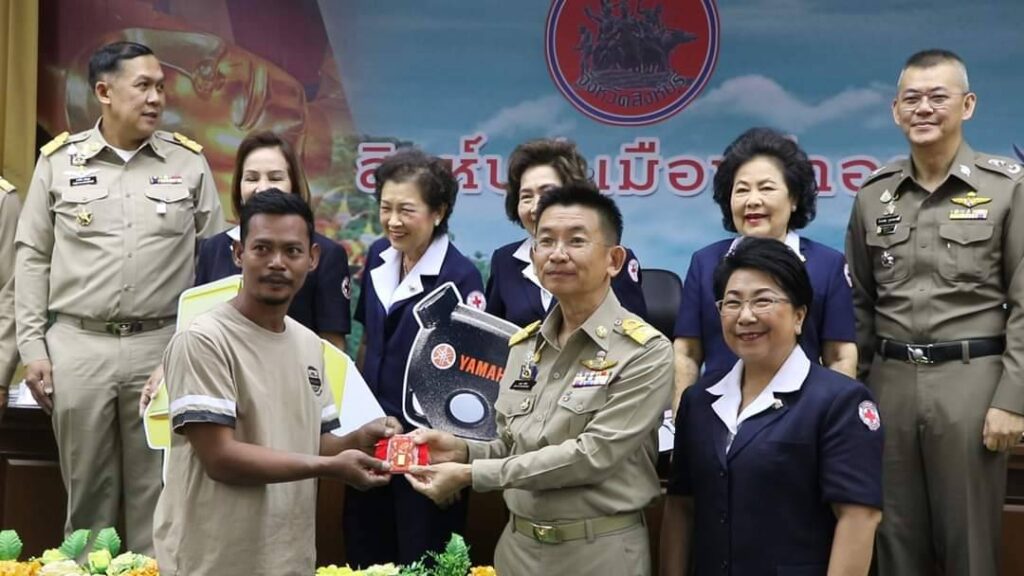 วันที่ 29 มกราคม 2567 เวลา 09.30 น. นายสุเมธ ธีรนิติ ผู้ว่าราชการจังหวัดสิงห์บุรี เป็นประธานในพิธีมอบรางวัลแก่ผู้ถูกรางวัลสลากกาชาดการกุศล งานเทศกาลกินปลาของดีเมืองสิงห์ ครั้งที่ 29 ณ ห้องประชุมขุนสรรค์ พันเรือง ชั้น 5 ศาลากลางจังหวัดสิงห์บุรี (หลังใหม่)โดยมี นางวาสนา ธีรนิติ นายกเหล่ากาชาดจังหวัดสิงห์บุรี นายวราดิศร อ่อนนุช นายปรีชา ดิลกพรเมธี รองผู้ว่าราชการจังหวัดสิงห์บุรี รองนายกเหล่ากาชาดจังหวัดสิงห์บุรี นายอำเภอทุกอำเภอ กรรมการเหล่ากาชาดจังหวัดสิงห์บุรี และเจ้าหน้าที่เหล่ากาชาดจังหวัดสิงห์บุรี ได้มอบรางวัลแก่ผู้ถูกรางวัลสลากกาชาดการกุศลจังหวัดสิงห์บุรี ปี 2567 ครั้งที่ 29 รางวัลที่ 1 – 6 จำนวน 16 ราย ในการประชุมคณะกรมการจังหวัดสิงห์บุรี ครั้งที่ 1 ประจำเดือนมกราคม 2567