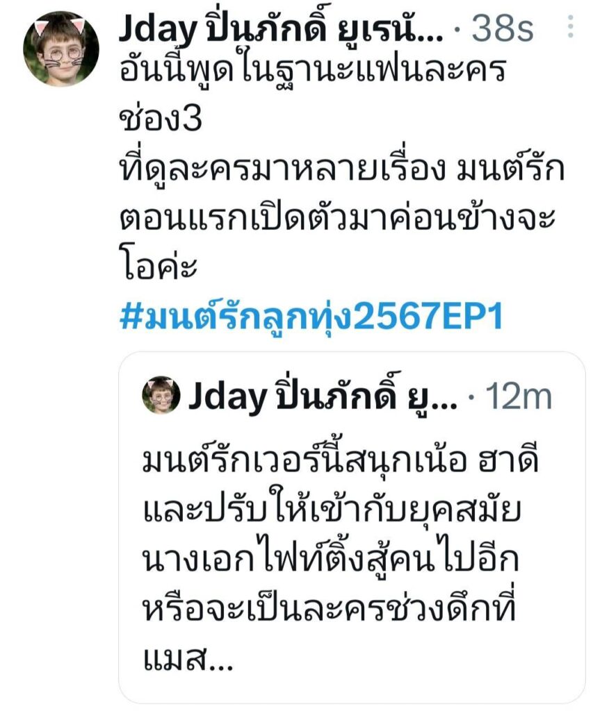 ว่ากันว่า ทั้งผู้จัดฯ ทีมงาน นักแสดง รวมถึงบรรดาแฟนคลับ แฟนด้อม และแฟนละครทั่วประเทศ ต่างใจจดใจจ่อกับการชมละครสุดฮอตกระแสดีอย่าง “มนต์รักลูกทุ่ง๒๕๖๗” ตอนแรก!!! ที่ใครหลายๆ คน รอลุ้นกันว่าจะออกมาแบบไหน เรตติ้งเท่าไหร่ จะติดเทรน X (Twitter) ระดับโลกหรือเปล่า?