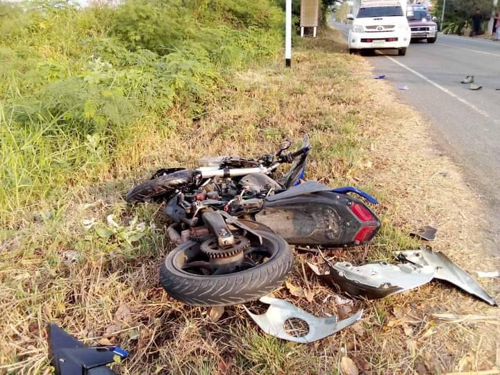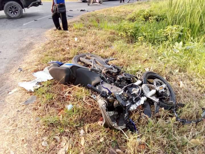 รถจักรยานยนต์ ไม่ติดแผ่นป้ายทะเบียน สภาพรถจักรยานยนต์พังยับกระเด็นไปตกกอหญ้าริมทาง ทำให้มีผู้เสียชีวิตที่เกิดเหตุ ในเวลาต่อมาได้ทราบชื่อผู้เสียชีวิตเป็นชาย 1 ราย ชื่อ