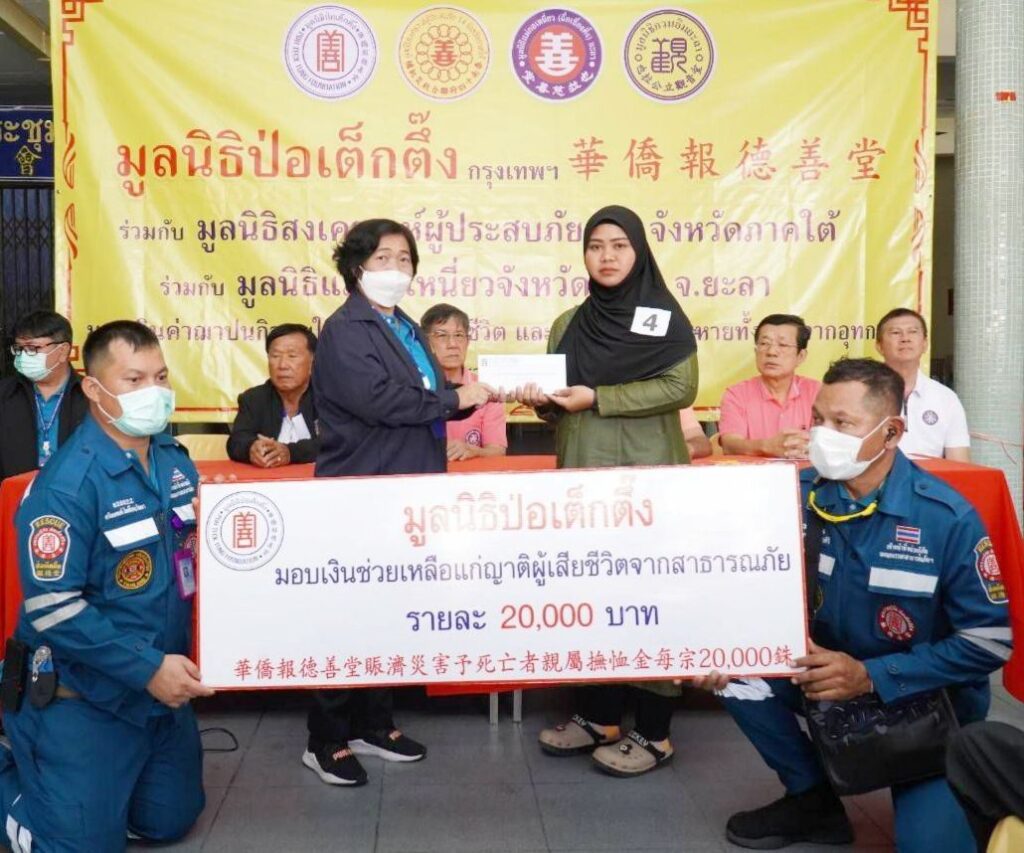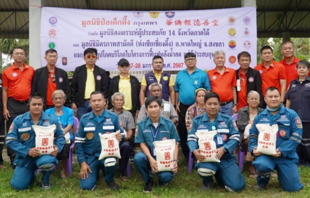 ระหว่างวันที่ 25 มกราคม – 2 กุมภาพันธ์ 2567 มูลนิธิป่อเต็กตึ๊ง นำโดย นายวิเชียร เตชะไพบูลย์ ประธานกรรมการฯ ห่วงใยผู้ประสบอุทัยภัยภาคใต้ มอบหมายให้ นายวิชิต ชินวงศ์วรกุล รองประธานกรรมการ พร้อมด้วยนางศิริกุล โอภาสวงศ์ กรรมการและเลขาธิการ และนายชาญกิจ วิทยาวรากรณ์ กรรมการ นำทีมฝ่ายสังคมสงเคราะห์ ฝ่ายปฏิบัติการ ฝ่ายบัญชีและการเงิน ลงพื้นที่ช่วยเหลือผู้ประสบอุทกภัย 5 จังหวัดภาคใต้ ในโครงการฟื้นฟูหลังน้ำลด ประกอบด้วย จังหวัดนครศรีธรรมราช สงขลา ปัตตานี ยะลา และจังหวัดนราธิวาส ประกอบด้วย แจกจ่ายเครื่องอุปโภคบริโภค ประกอบด้วย ข้าวสาร บะหมี่กึ่งสำเร็จรูป ปลากระป๋อง น้ำมัน และน้ำปลา รวมจำนวน 9,000 ชุด ๆ ละ 450 บาท มอบเงินสงเคราะห์กรณีบ้านพังเสียหายทั้งหลัง หลังละ 10,000 บาท ประมาณ 217 หลังคาเรือน มอบเงินสงเคราะห์ค่าฌาปนกิจให้แก่ญาติผู้เสียชีวิต รายละ 20,000 บาท ประมาณ 22 ราย รวมงบประมาณไม่ต่ำว่า 6.6 ล้านบาท โดยมี ผู้แทนจากหน่วยงานรัฐเป็นประธานในพิธี พร้อมทั้งมูลนิธิสงเคราะห์ 14 จังหวัดภาคใต้ และ สมาคม/มูลนิธิแต่ละจังหวัด เป็นผู้ประสานงานและร่วมให้ความช่วยเหลือ